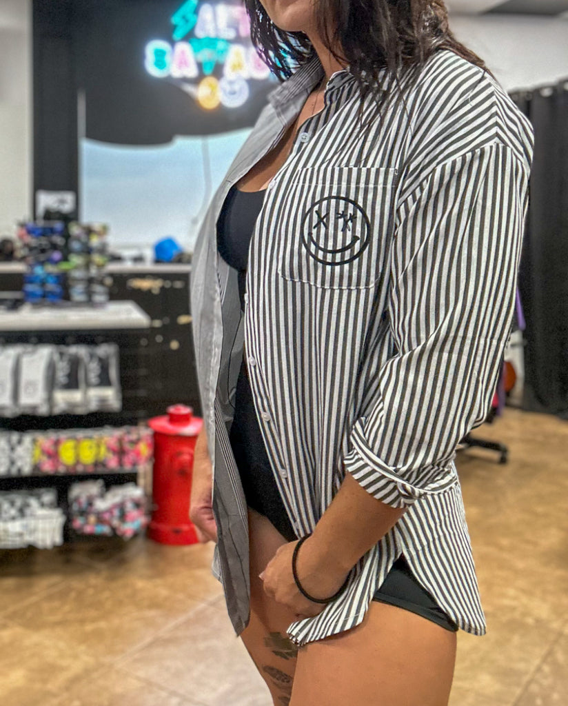 Salty Savage Unisex “OG Smile” Shield Sunglasses | Black Stripes