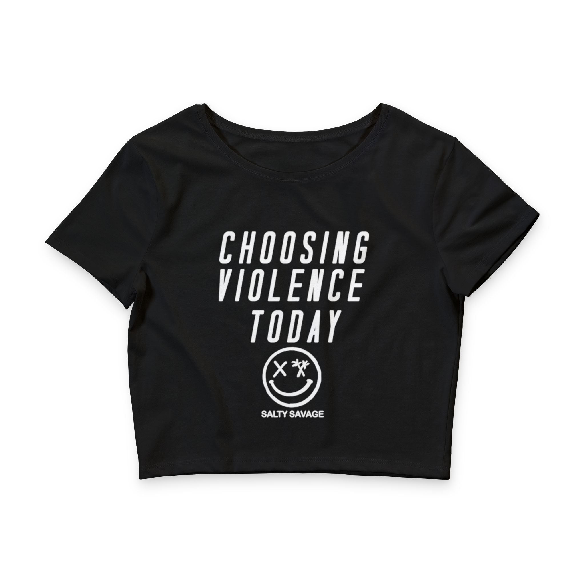 This cropped tee carries an unapologetic edge—soft, lightweight, and built to sit close to the body. The black fabric creates a stark backdrop for bold white lettering and the minimalist emblem, letting the message take the stage. Wear it layered under an oversized jacket or with high-waisted denim for days when you want your look to speak with attitude. It feels light on warm afternoons, breathes during long nights out, and holds its shape thanks to side seams and quality combed cotton blend. Tear-away label keeps the neckline comfortable. For those who favor bold statements and confident silhouettes, this crop tee is a daily go-to that adds a rebellious accent to casual wardrobes.