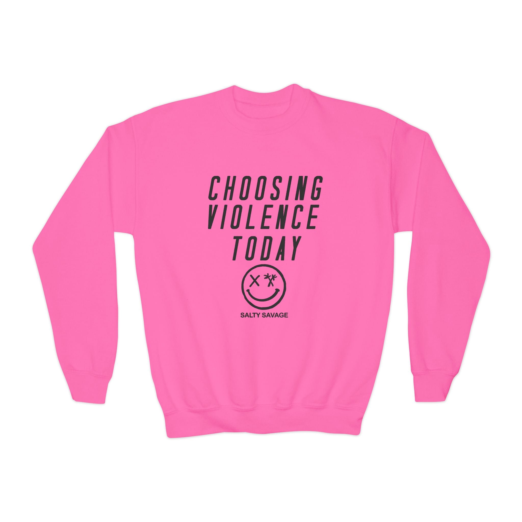 This roomy youth crewneck sweatshirt wears its attitude plainly — soft, substantial, and unapologetic. The front print reads like a bold little declaration, offset by a simple emblem beneath, giving the garment a skate-punk edge without feeling overdesigned. It settles into a loose silhouette that kids can move in: layers easily over tees on chill afternoons, keeps sleeves cozy during evening hangouts, and stands up to rough-and-tumble play. The medium-heavy knit feels dependable against the skin, and the ribbed collar and cuffs spring back after washes. For parents who want something durable and for kids who want a statement piece, this sweatshirt bridges both worlds with comfort and streetwise style.
