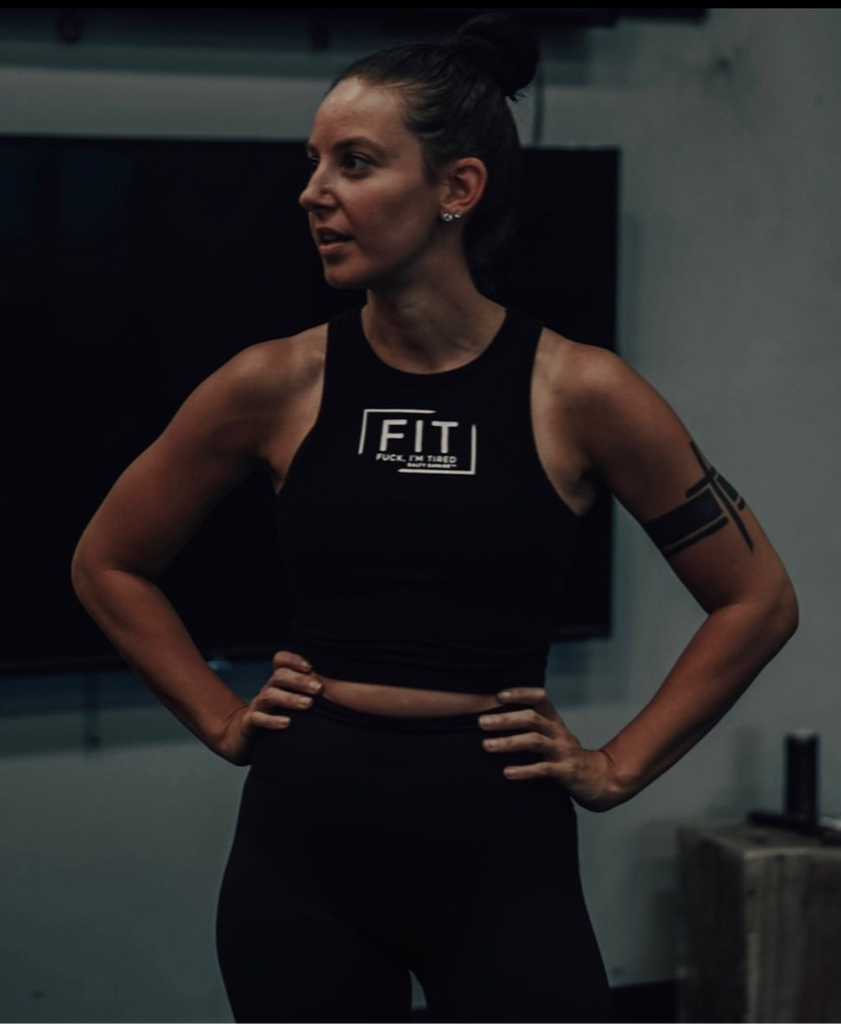 Salty Savage Ladies "FIT Fuck, I’m Tired" High Neck Cropped Tank | Micro