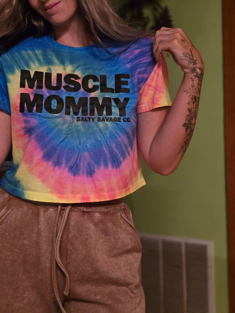 Salty Savage Ladies "MUSCLE MOMMY" Spiral Tie Dye Crop Tee