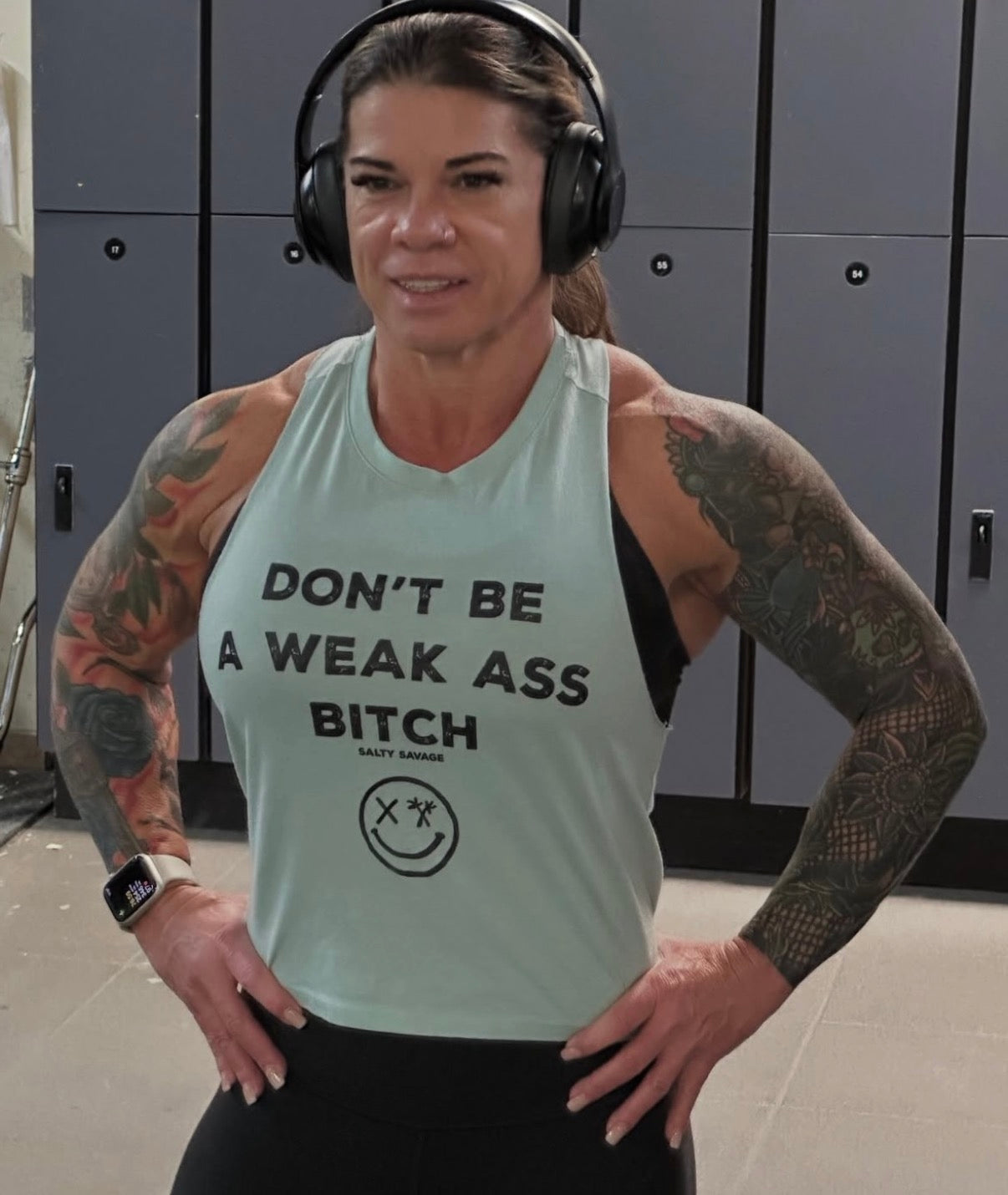 Salty Savage Ladies "Don’t Be A Weak Ass Bitch" Flowy Crop Tank - Small / Black is backordered and will ship as soon as it is back in stock.