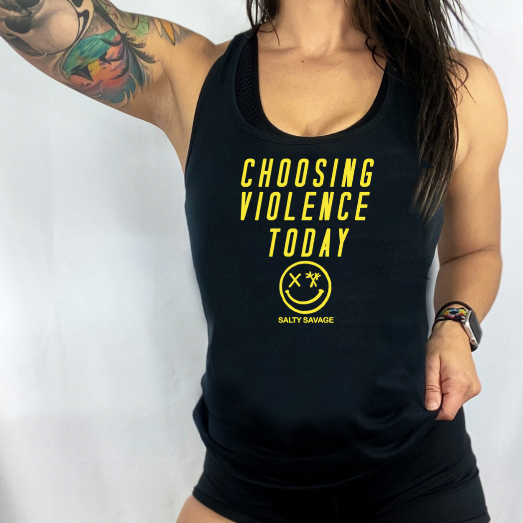 Salty Savage Ladies "Choosing Violence Today" Racerback Tank | Yellow