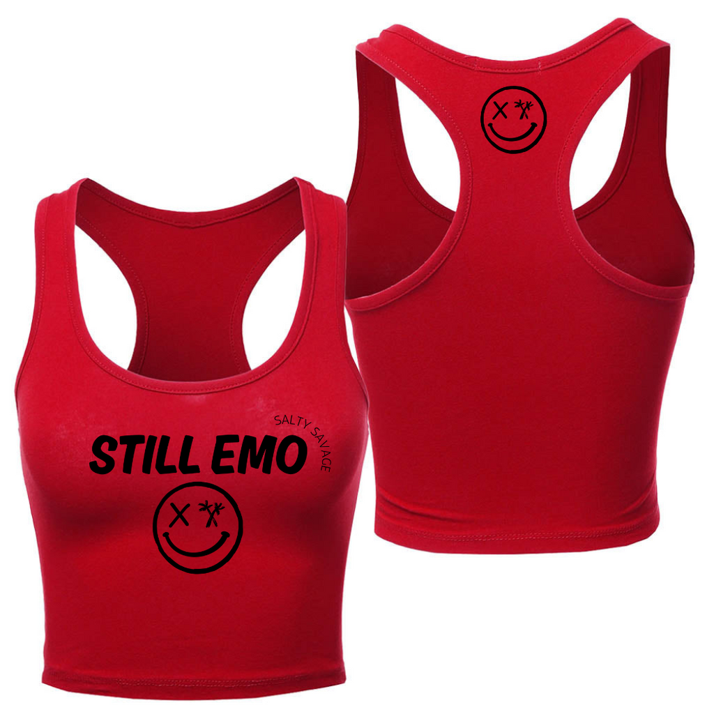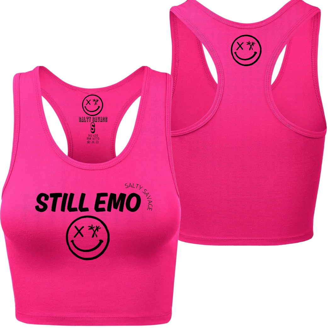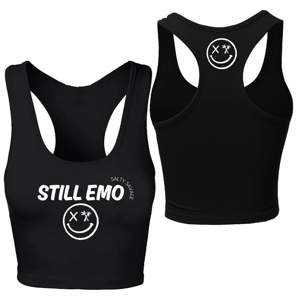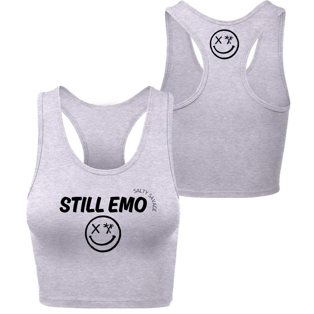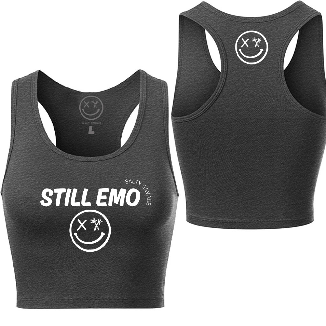 Ladies "STILL EMO" Racerback Crop Tank - Charcoal Gray / Medium is backordered and will ship as soon as it is back in stock.