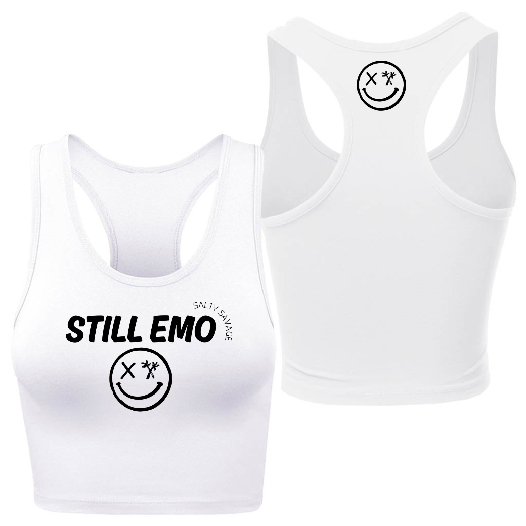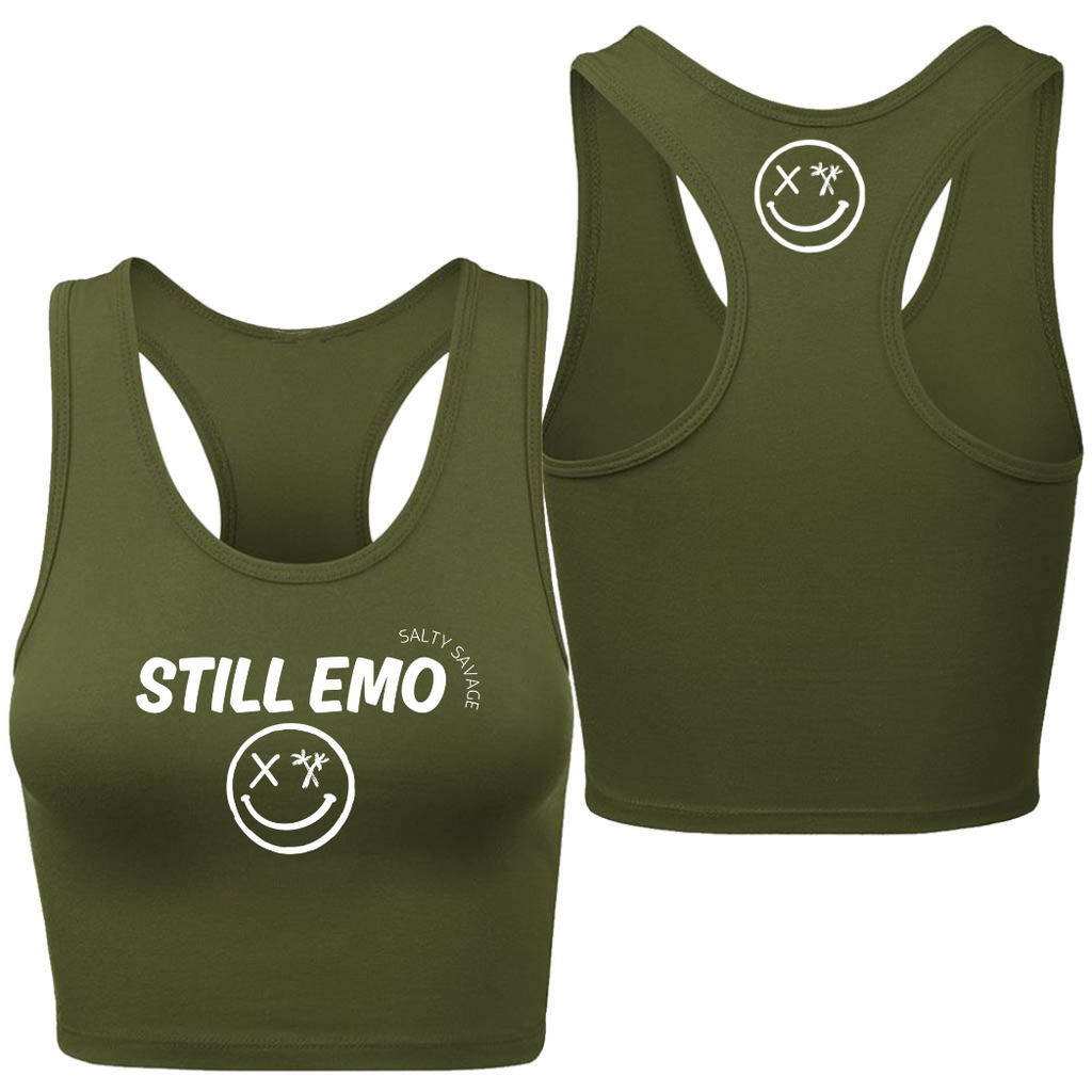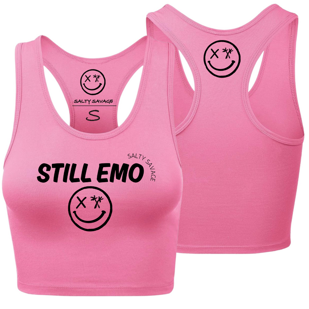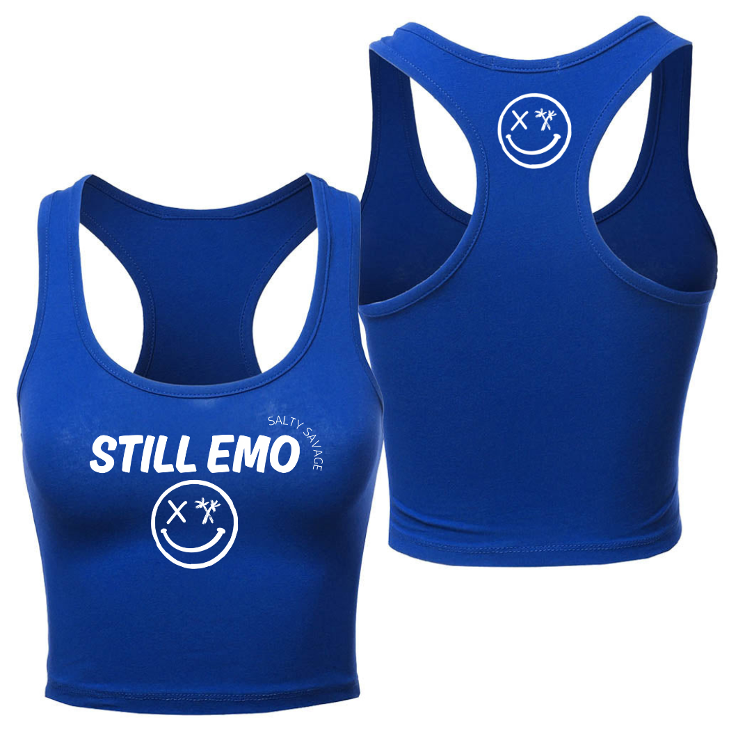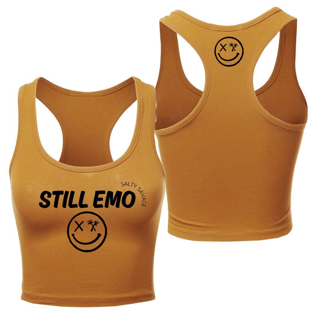 Ladies "STILL EMO" Racerback Crop Tank - Charcoal Gray / Medium is backordered and will ship as soon as it is back in stock.
