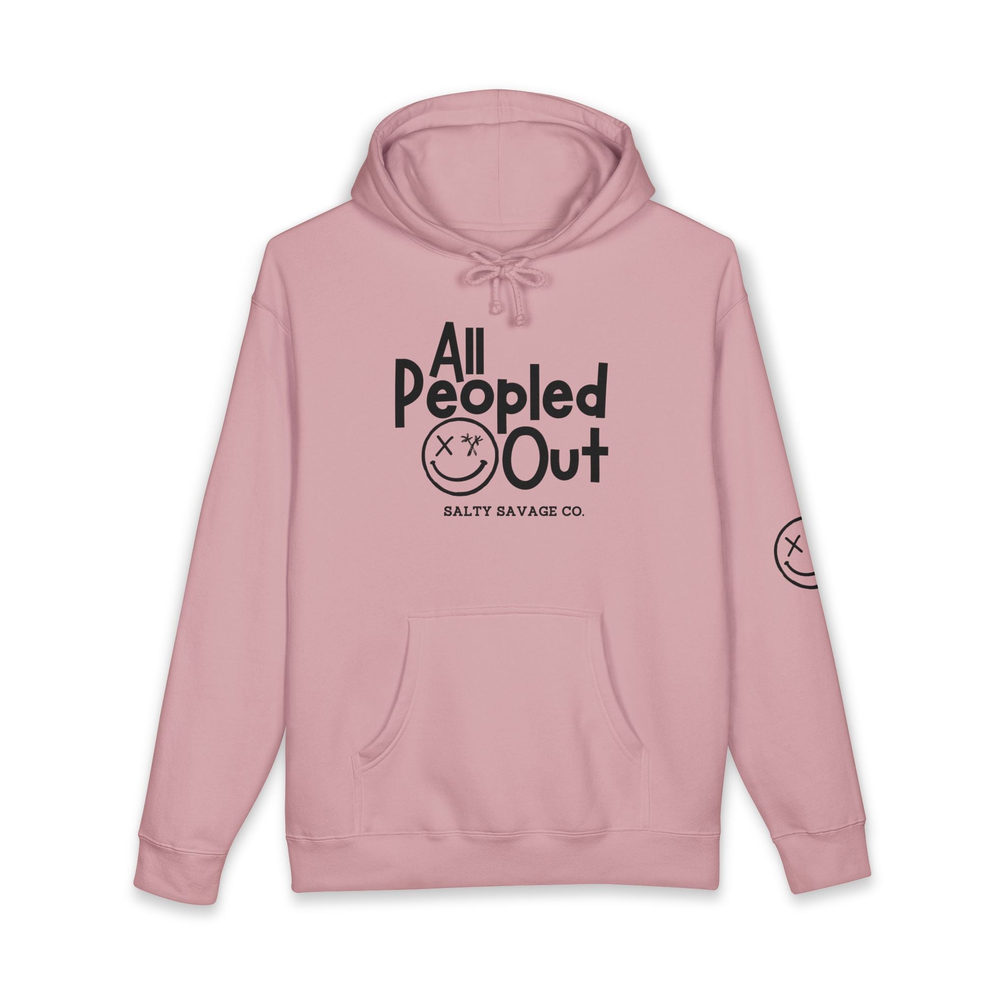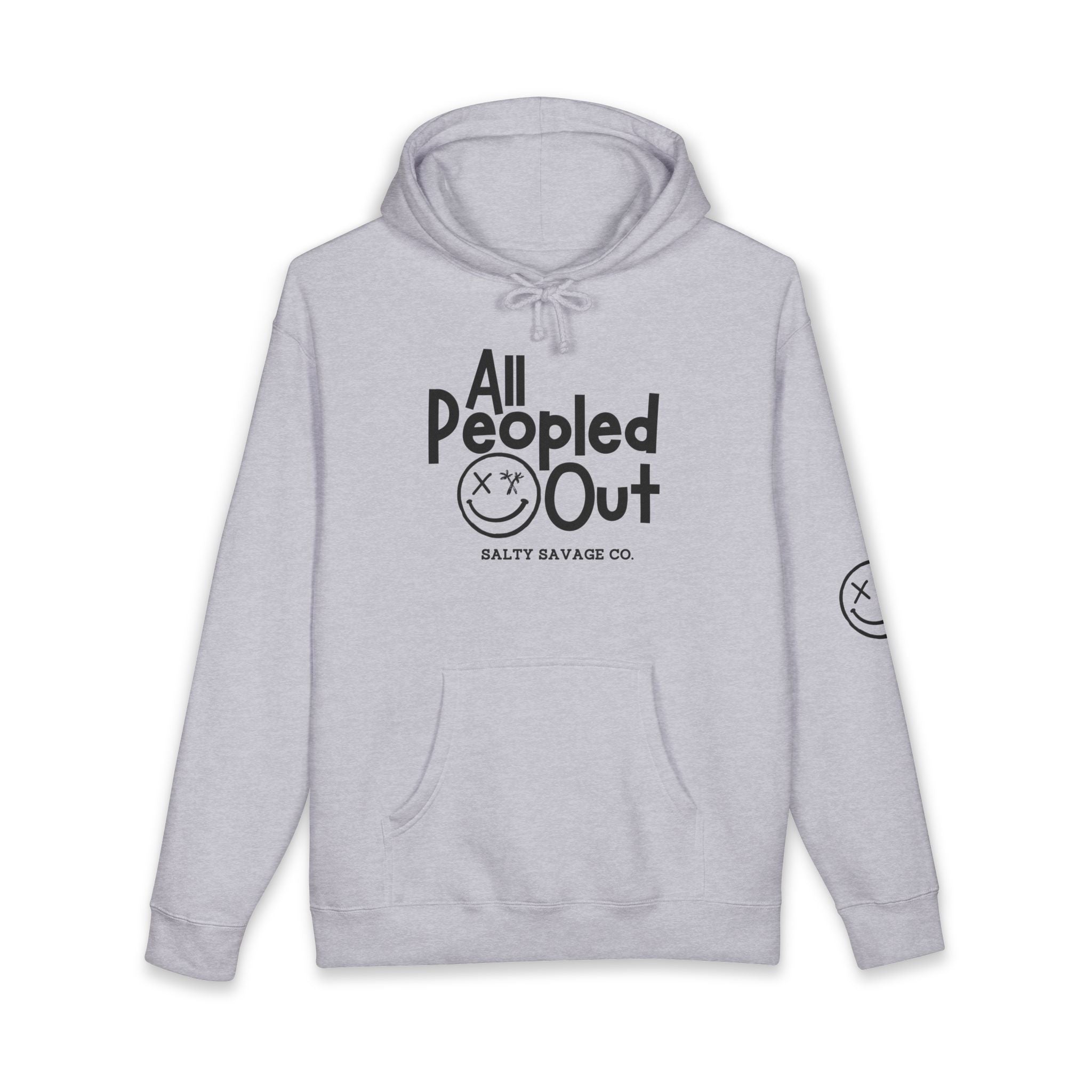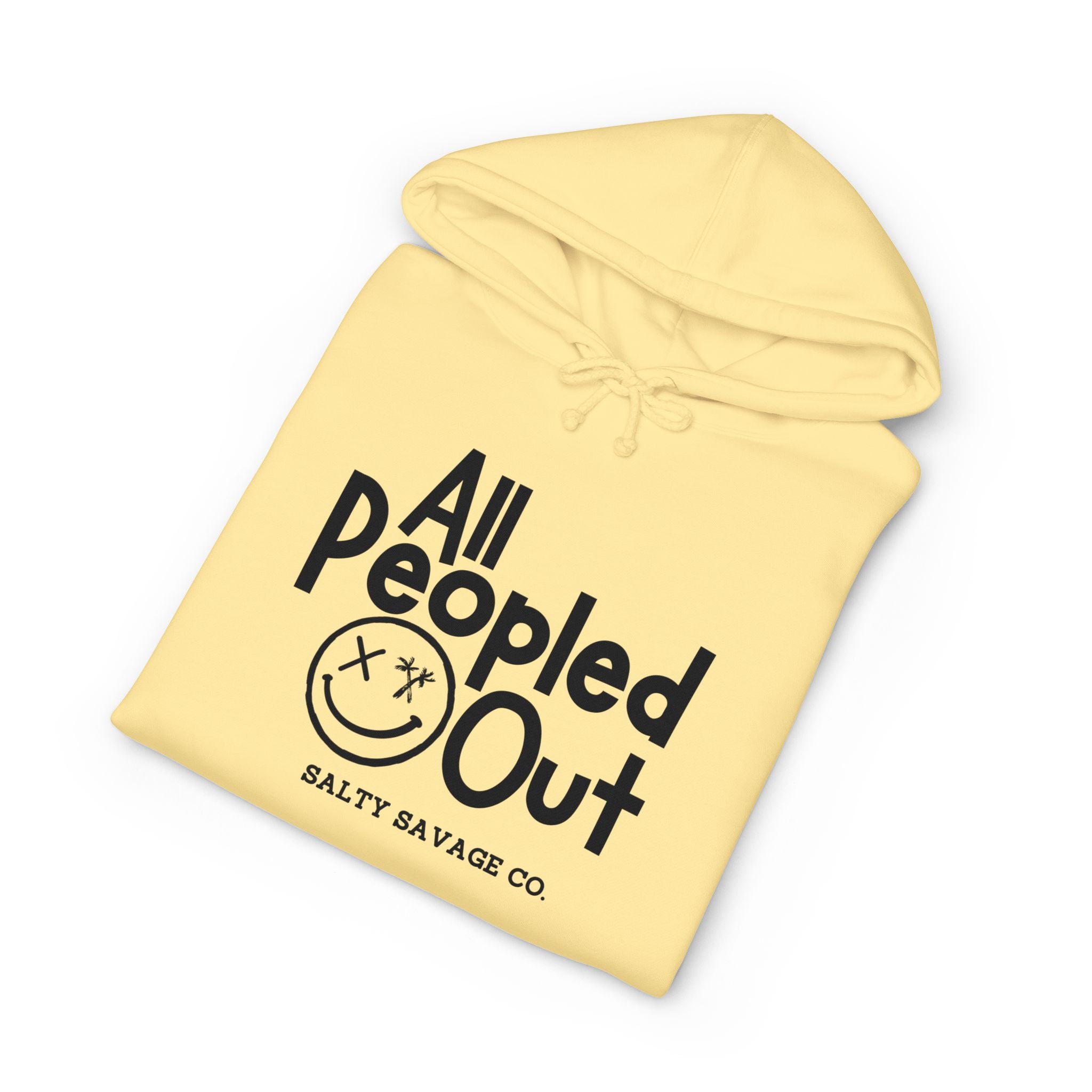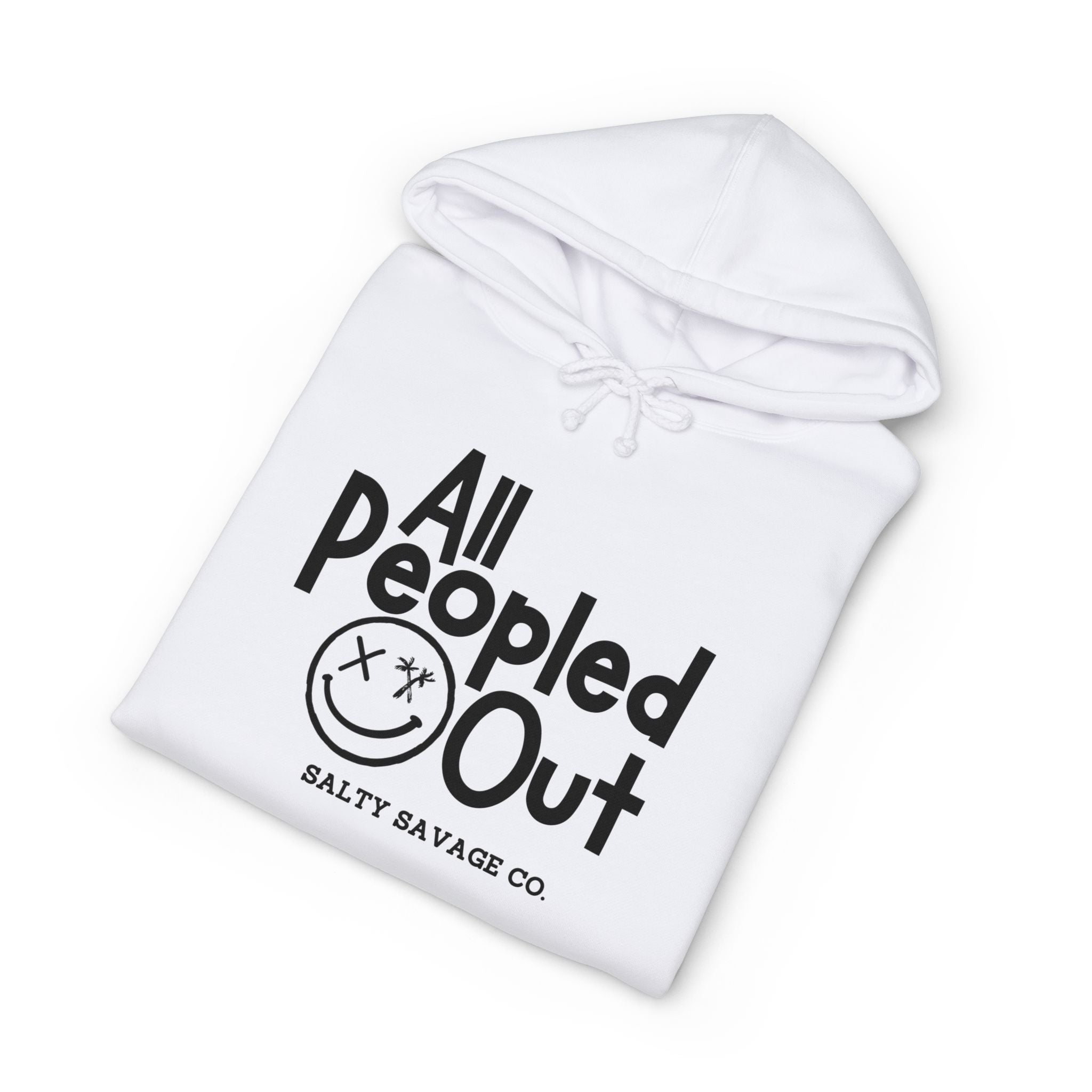 This heavyweight hooded sweatshirt wraps you in a quiet, grounded energy. The clean white canvas and bold, hand-drawn “All Peopled Out” graphic read like a wry, tired-witty statement—subtle rebellion without shouting. The oversized pocket, fleece-lined hood, and roomy cut make it a go-to layer for long commutes, late-night walks, or slow cafe mornings. Wear it when you need comfort that feels intentional: the kind of piece you reach for when you want to blend comfort with a little bit of edge. The small sleeve emblem adds a low-key detail that rewards close-up looks, while the soft, durable fabric will soften with each wear but keep its structure.