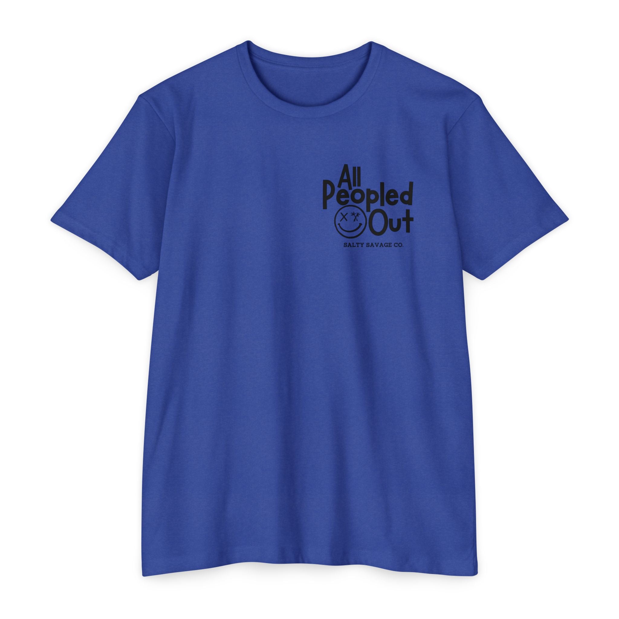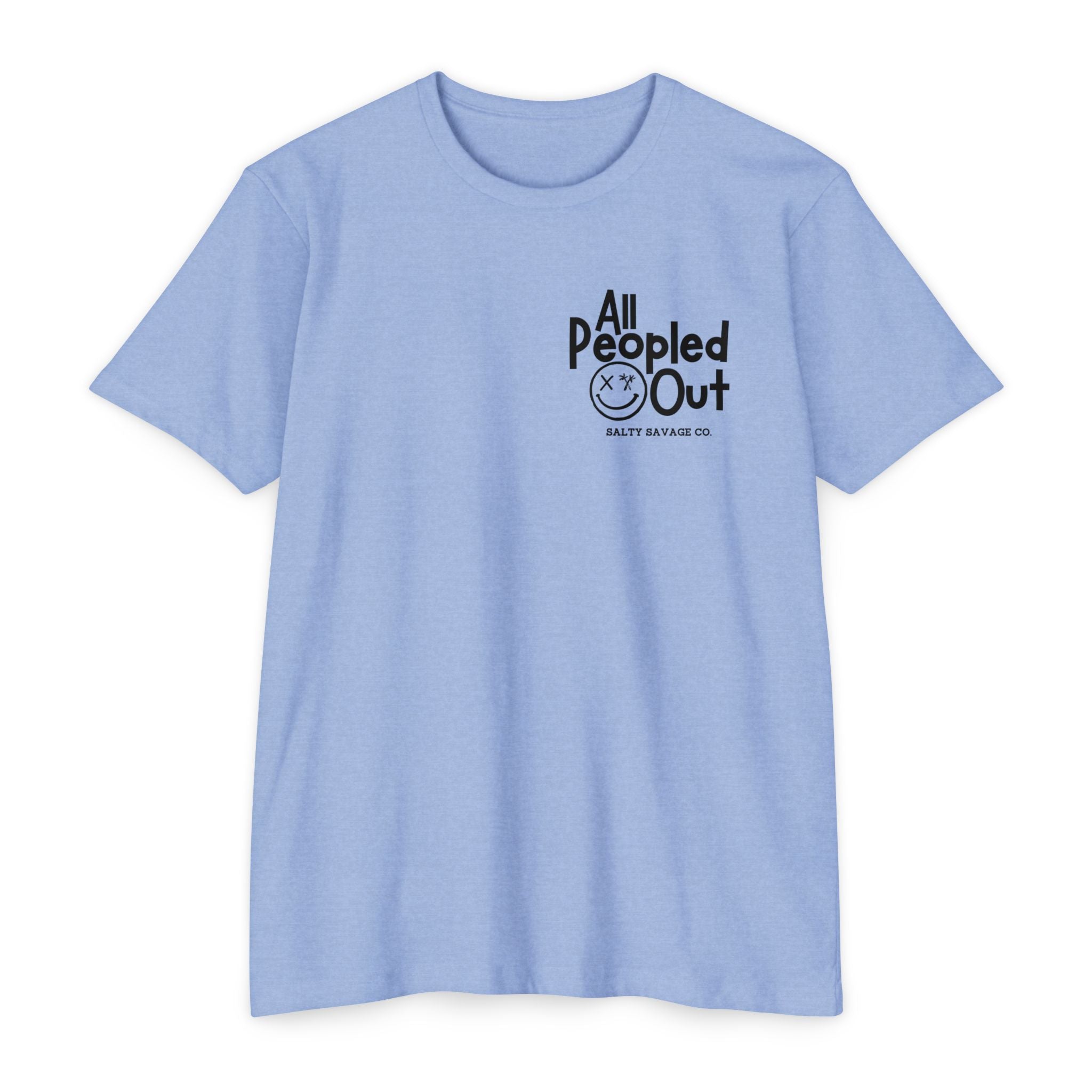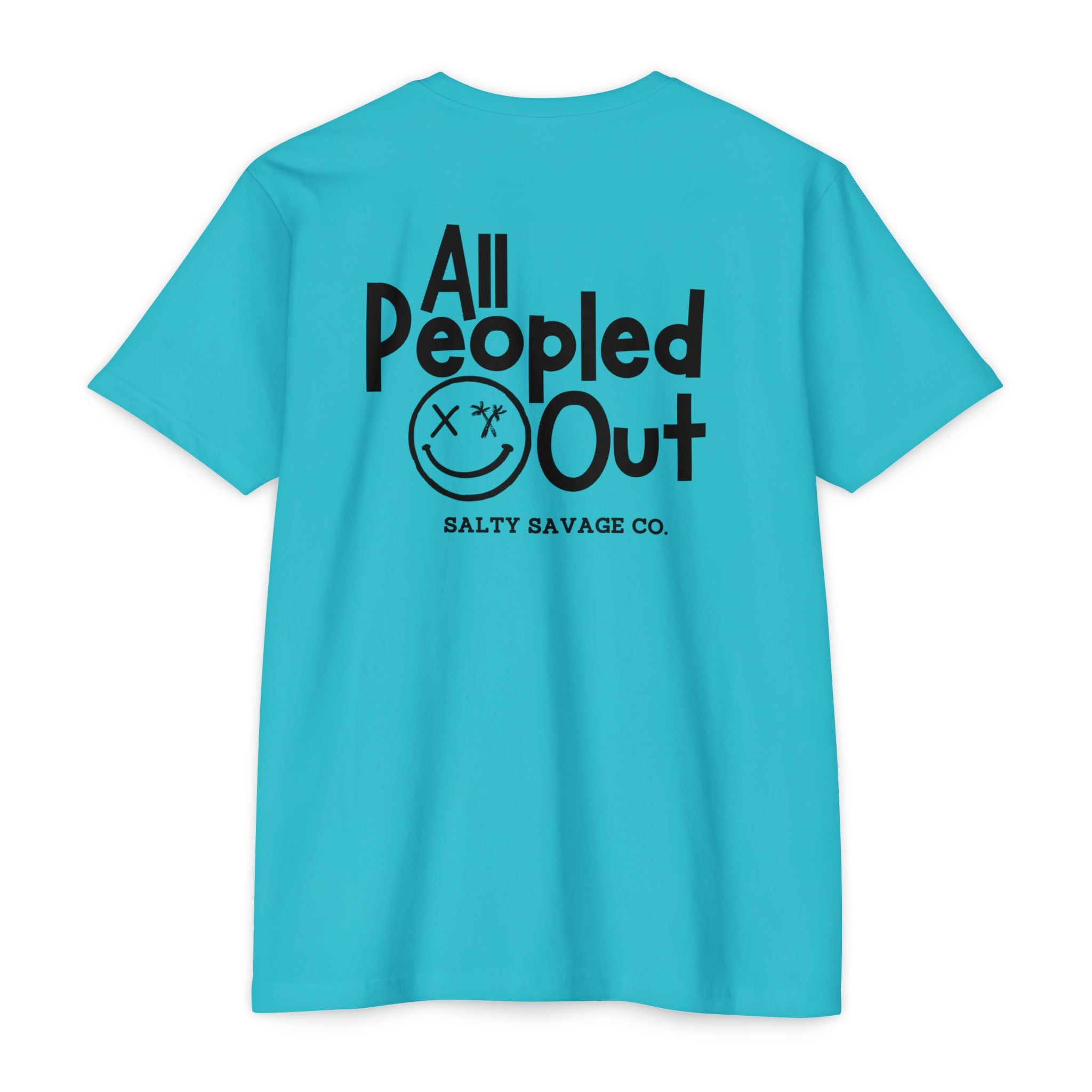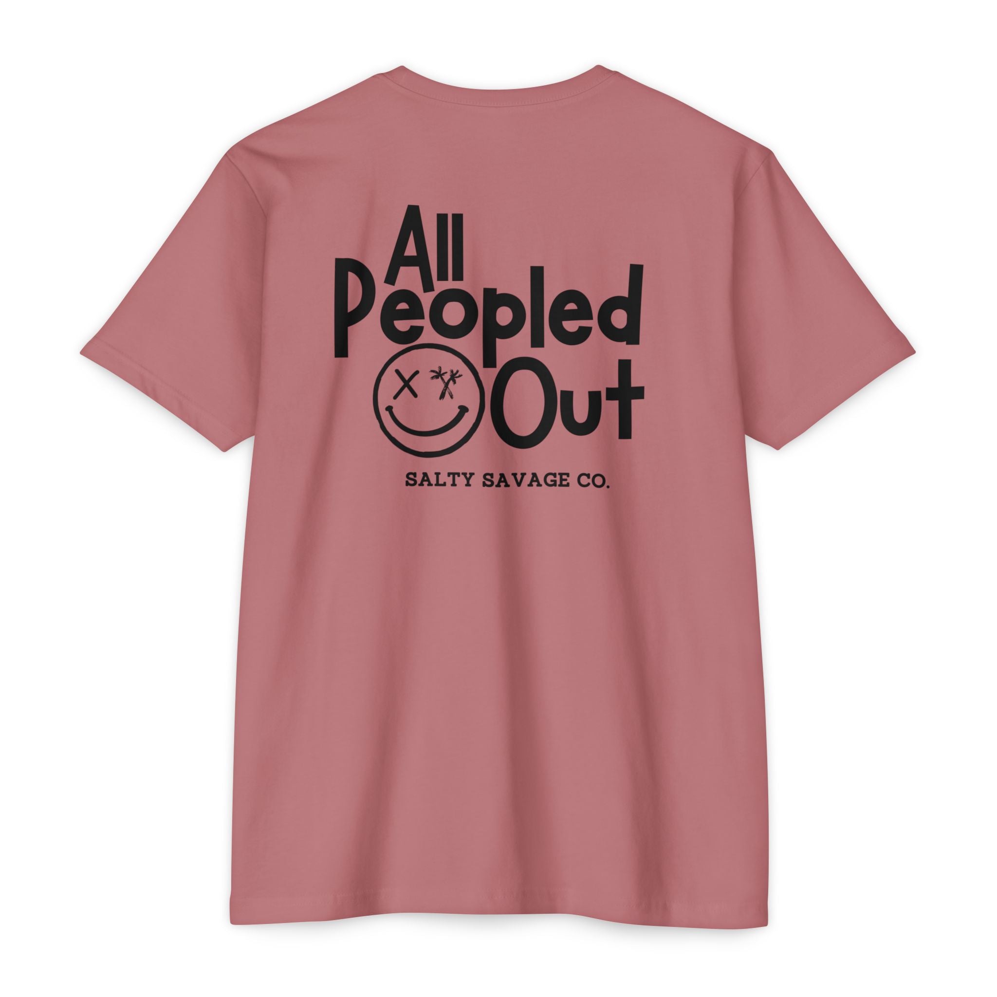 Light, breezy, and a little delightfully sardonic — this tee carries an easygoing attitude you can wear. Soft combed-ring spun cotton blends with polyester to deliver a smooth, lightweight feel that drapes casually without clinging. The front chest mark and larger back graphic read “All Peopled Out” with a playful crossed-out smiley, giving a wink to anyone who’s had their fill of socializing. Throw it on for slow mornings, quiet coffee runs, or when you want to signal low-key vibes without saying a word. The classic fit and resilient ribbed collar keep the silhouette comfortable and familiar, while the tear-away label and clean shoulder taping keep things tidy against the skin. It’s a relaxed layer that reads equal parts mellow and mischievous — for days when small talk is optional and downtime is everything.