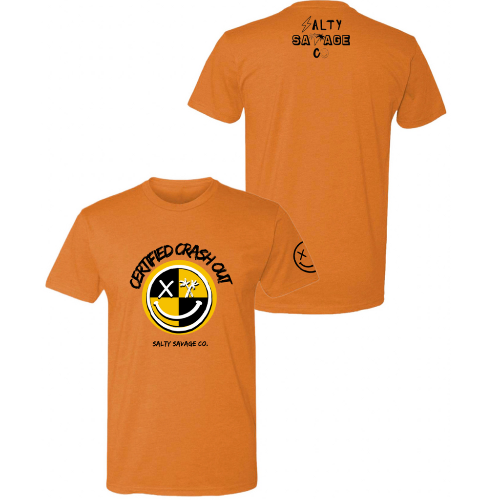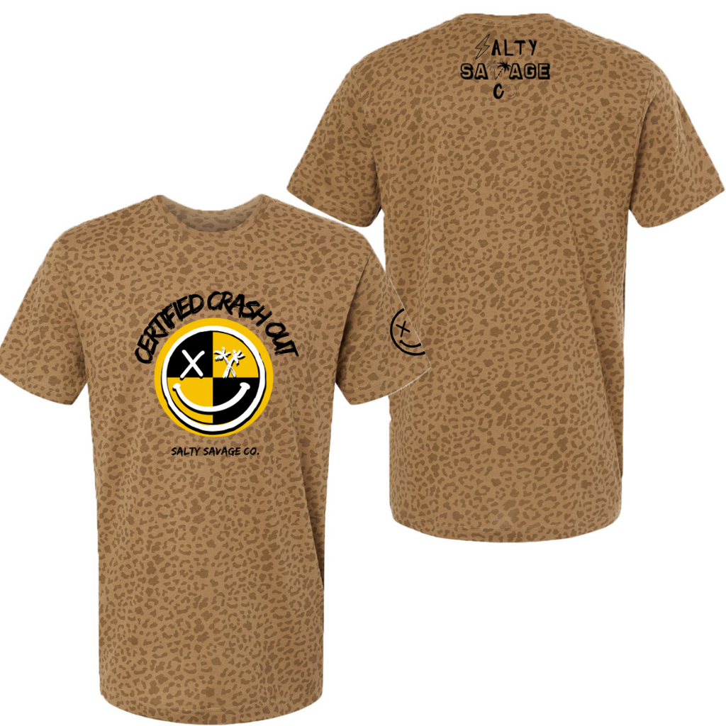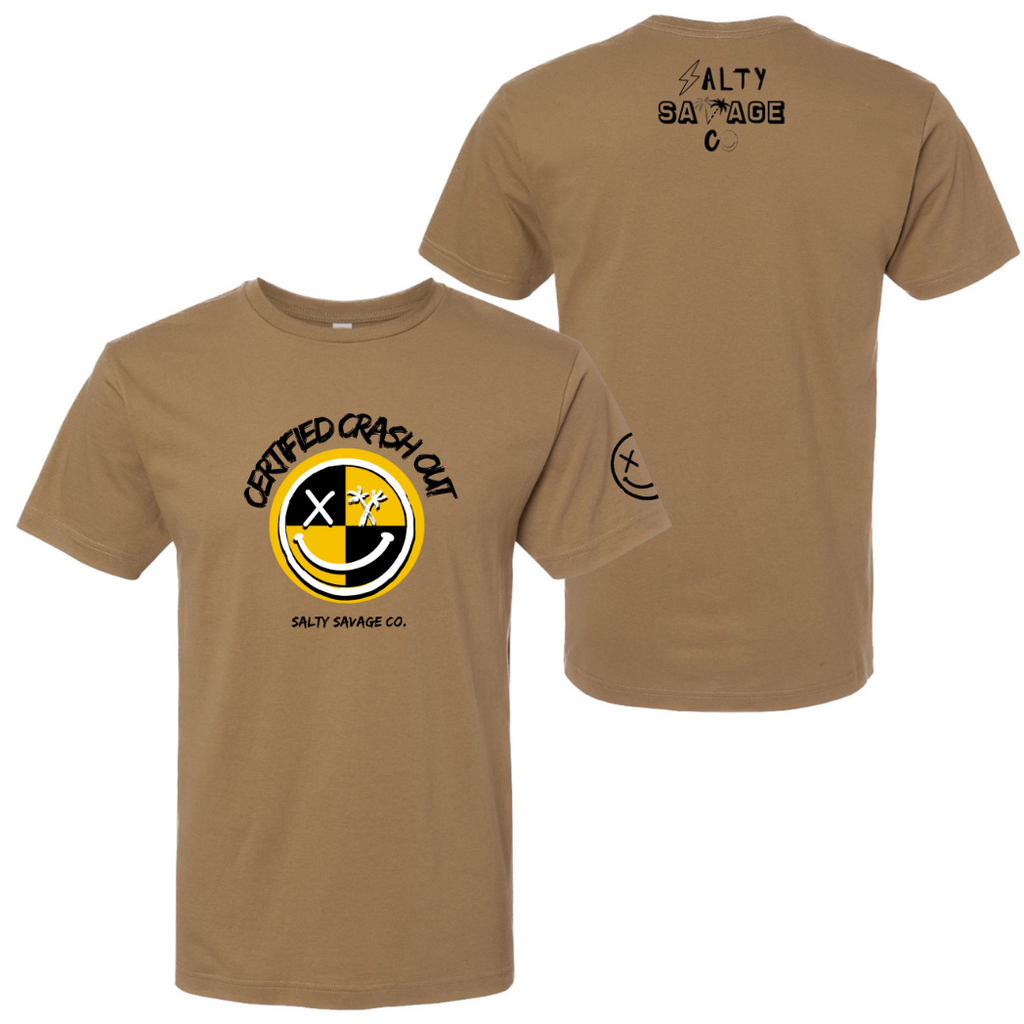 Salty Savage Unisex "CERTIFIED CRASH OUT" 100% Cotton Tee - Coyote Brown / Small is backordered and will ship as soon as it is back in stock.