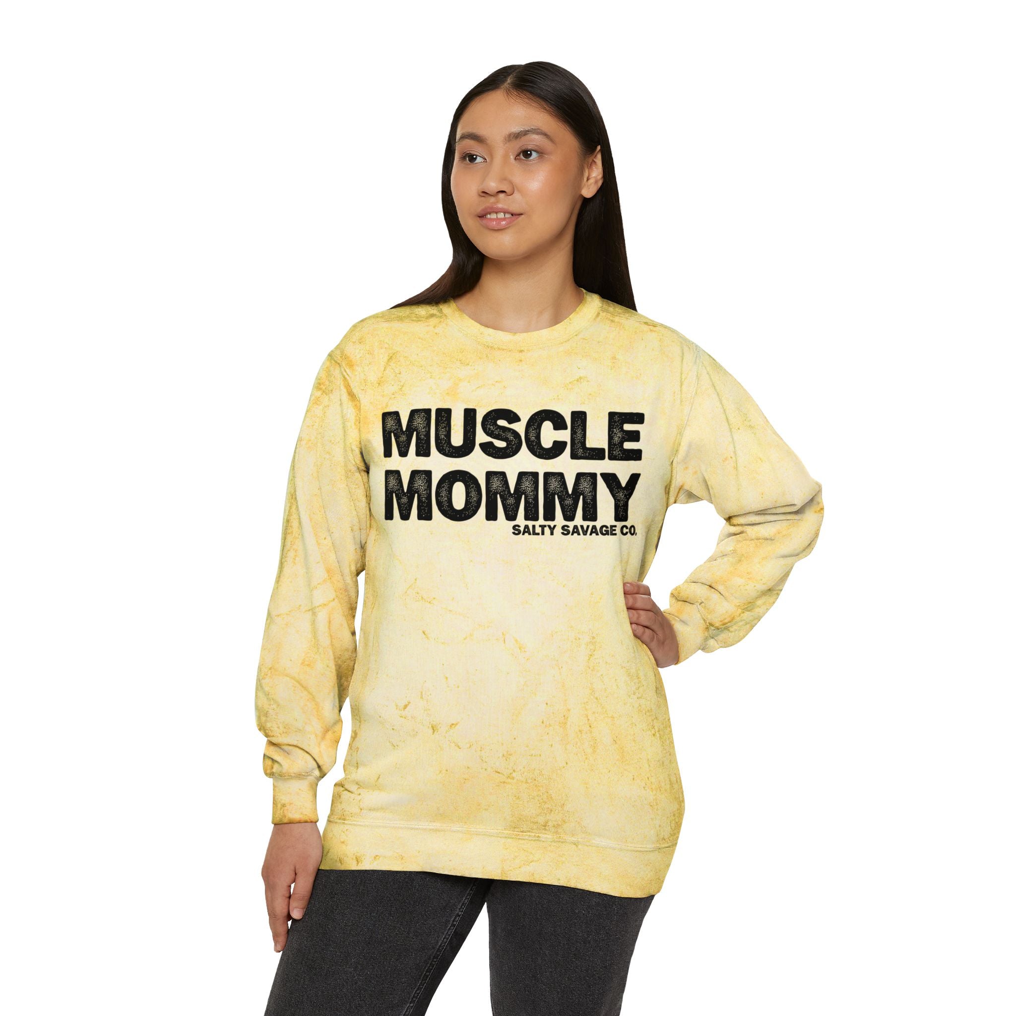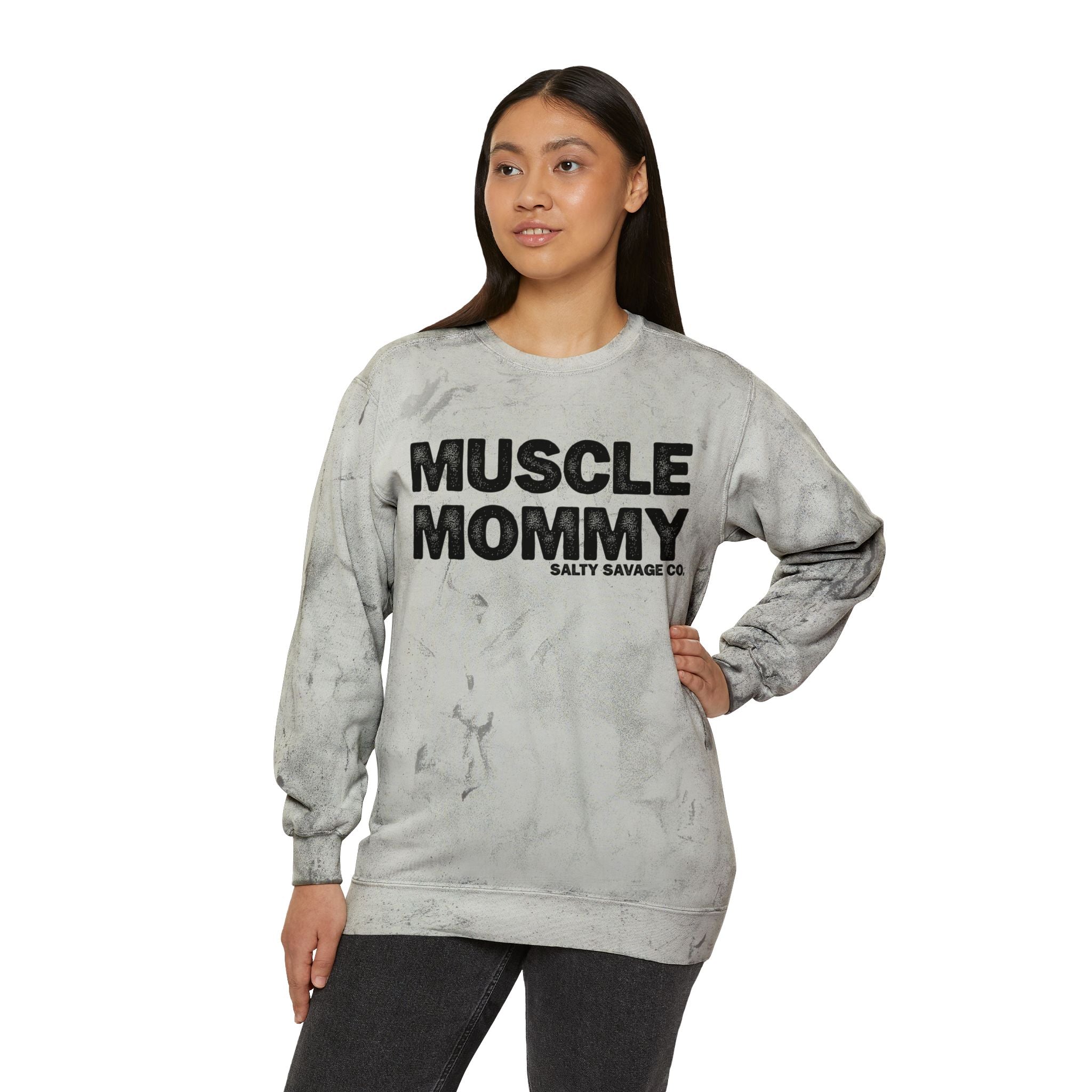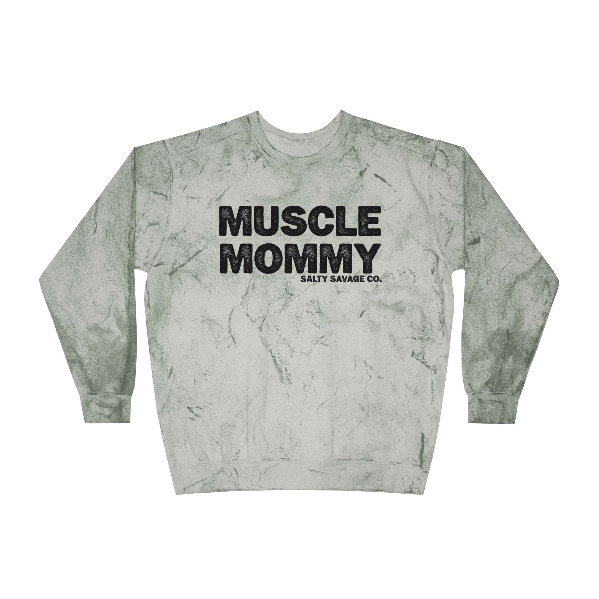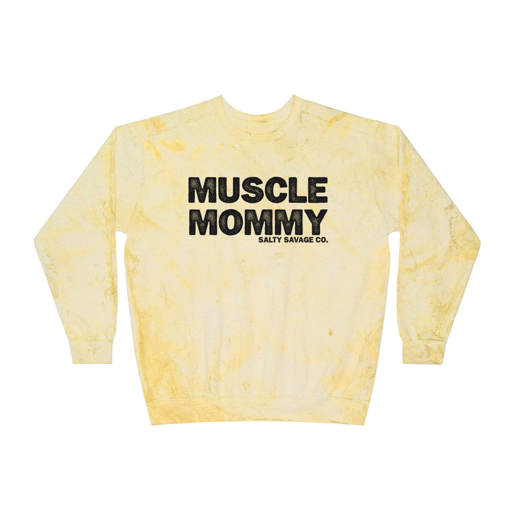 This cozy crewneck speaks like a friend who trains hard and laughs louder. The slightly washed, sun-flecked colorway pairs with bold, weathered typography that reads “MUSCLE MOMMY” — confident and playful. Wear it after a morning lift, on school-run duty, or lounging with protein pancakes. The relaxed silhouette drapes easily over workout layers and feels lived-in from day one, while the garment-dyed finish gives each piece its own soft, vintage personality. It’s for those who balance barbell sessions with family chaos, who want comfort without losing attitude.