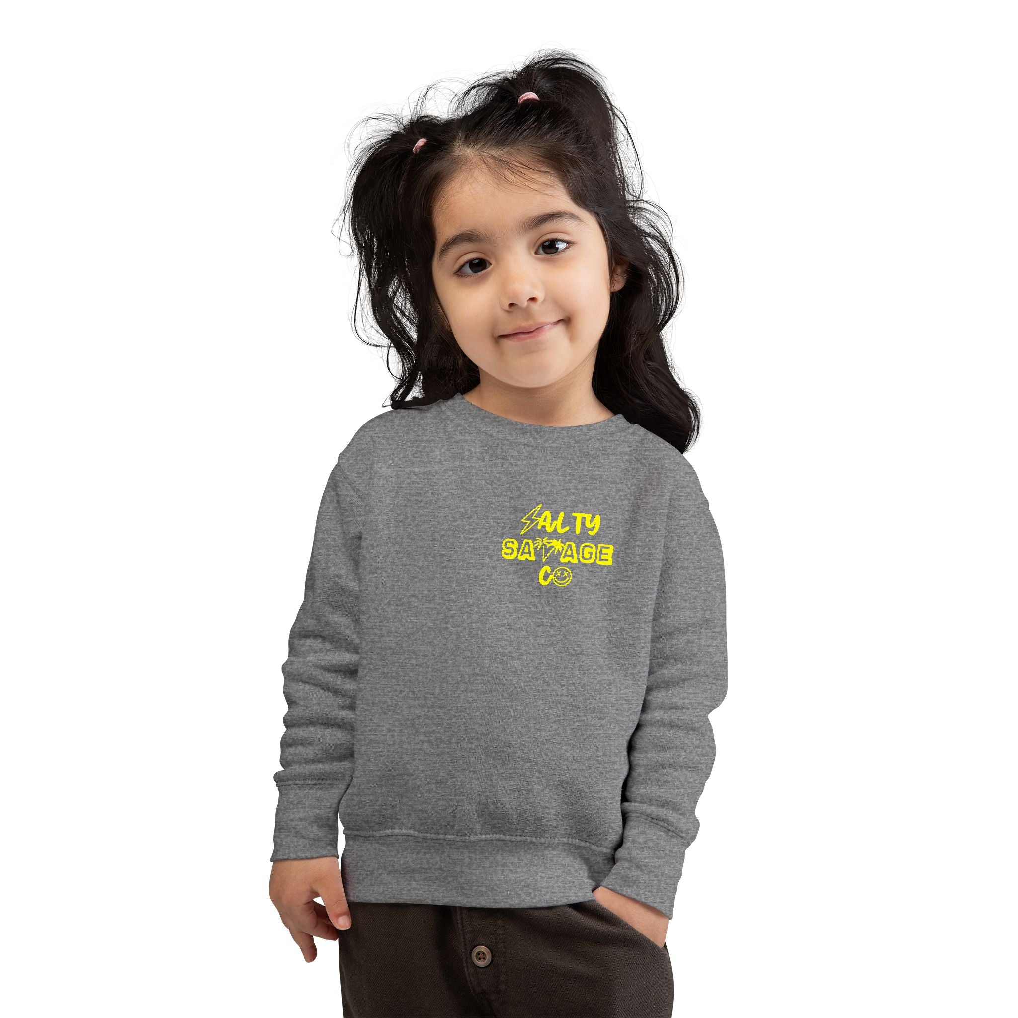A soft, cozy sweatshirt made for little adventurers who love to move and explore. The subtle speckled knit and relaxed silhouette create a lived-in look that layers easily over tees or pajamas. Small neon artwork on the chest adds a playful pop that kids notice and parents love for its easy, low-fuss style. Lightweight but warm, this sweatshirt becomes a go-to for playground runs, storytime snuggles, and slow weekend mornings at home.