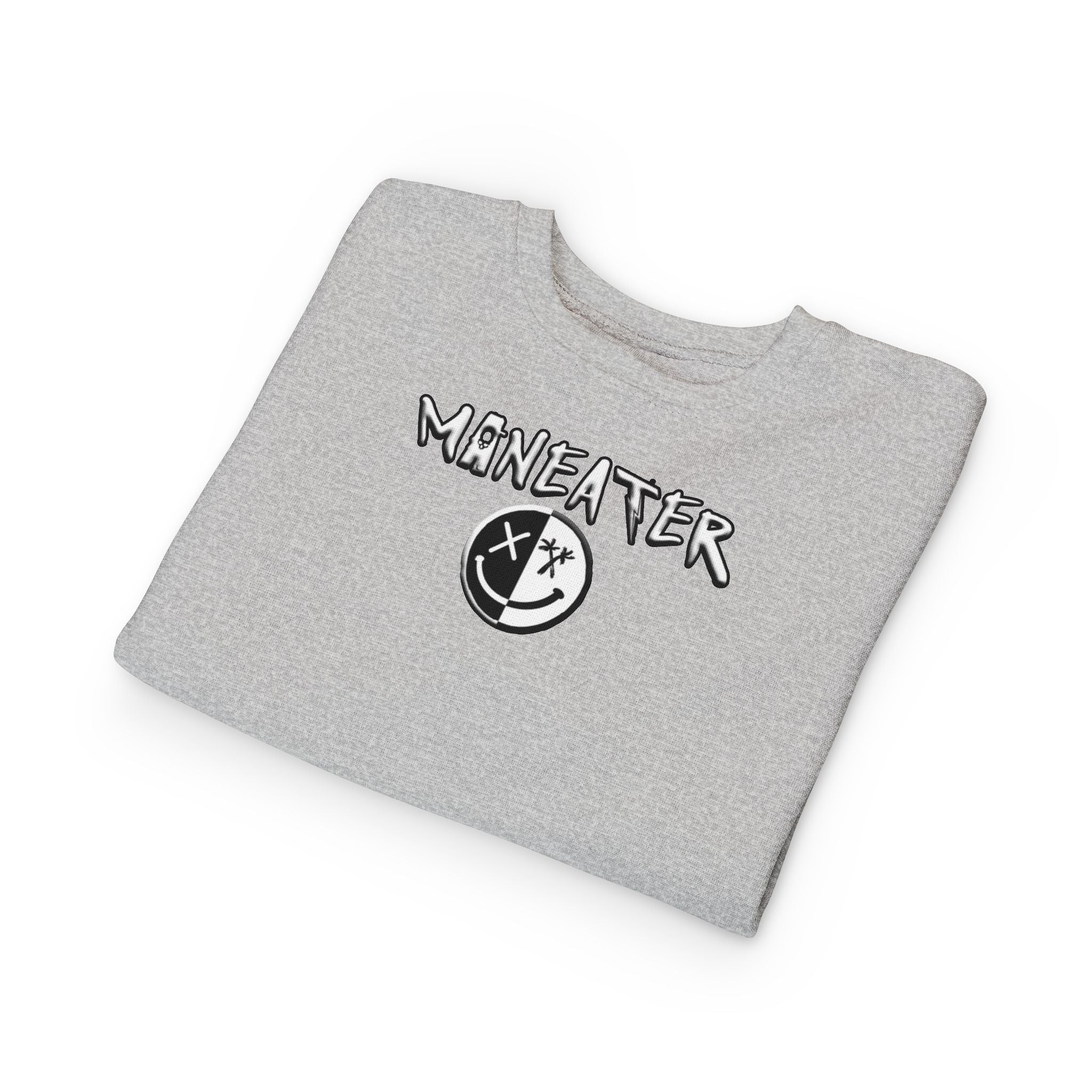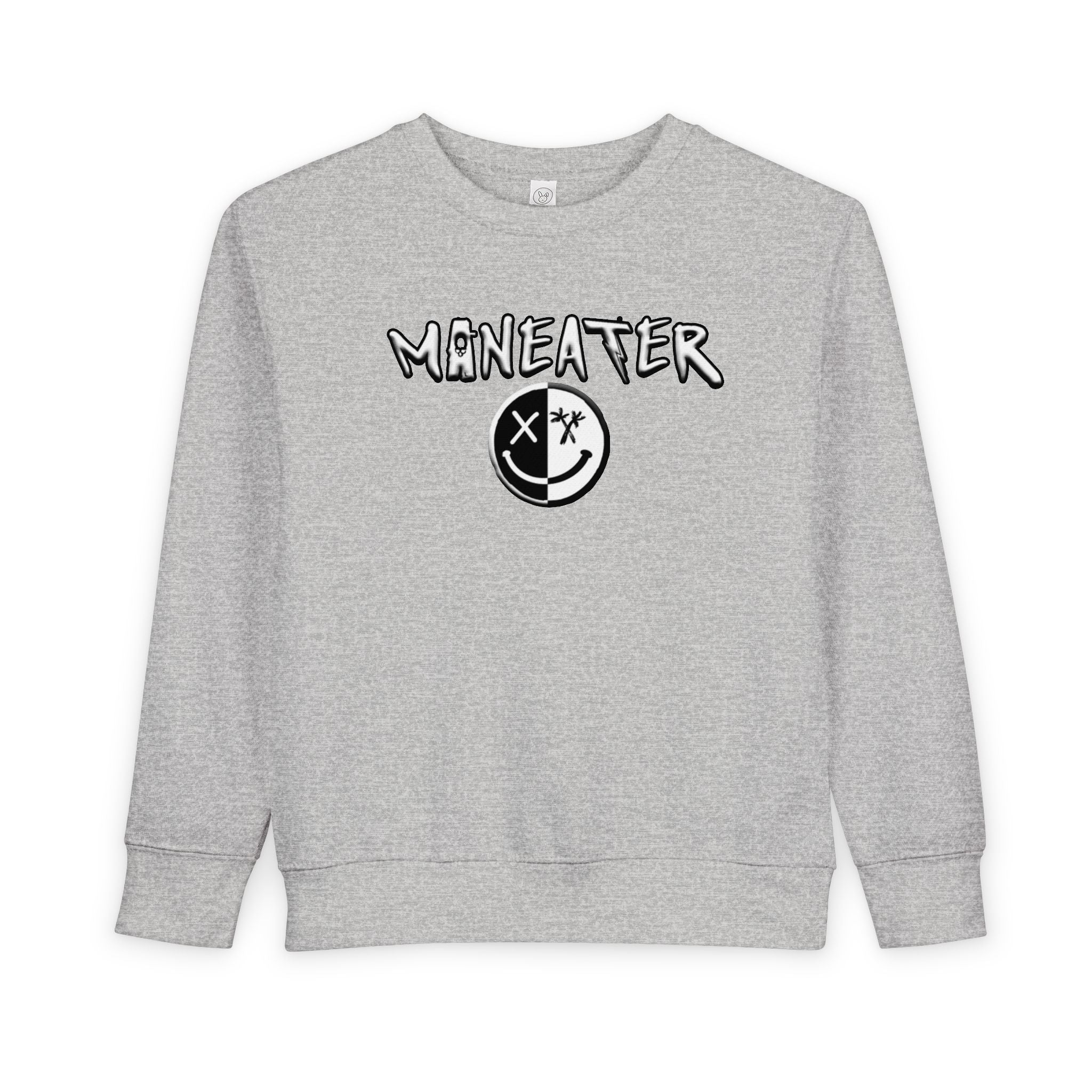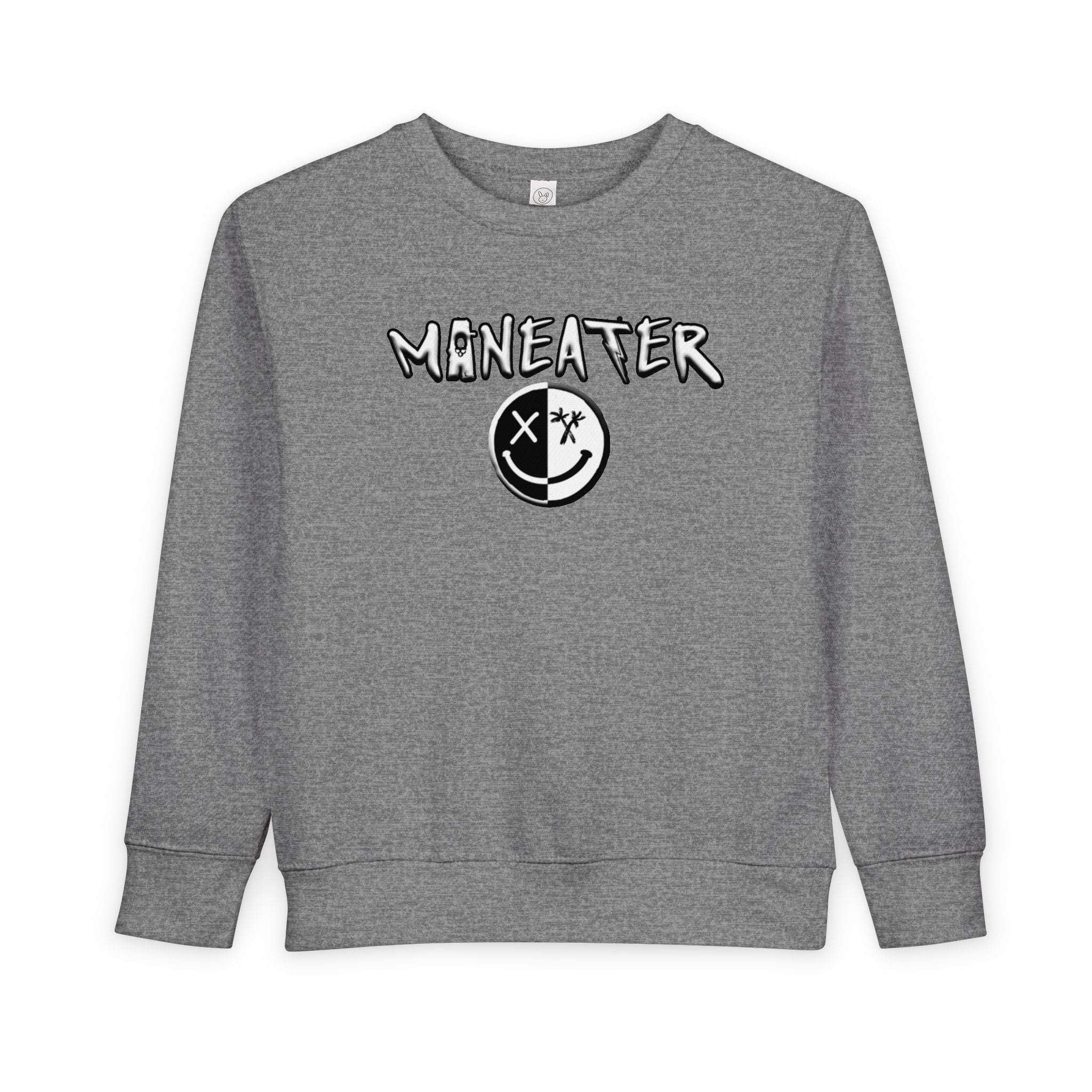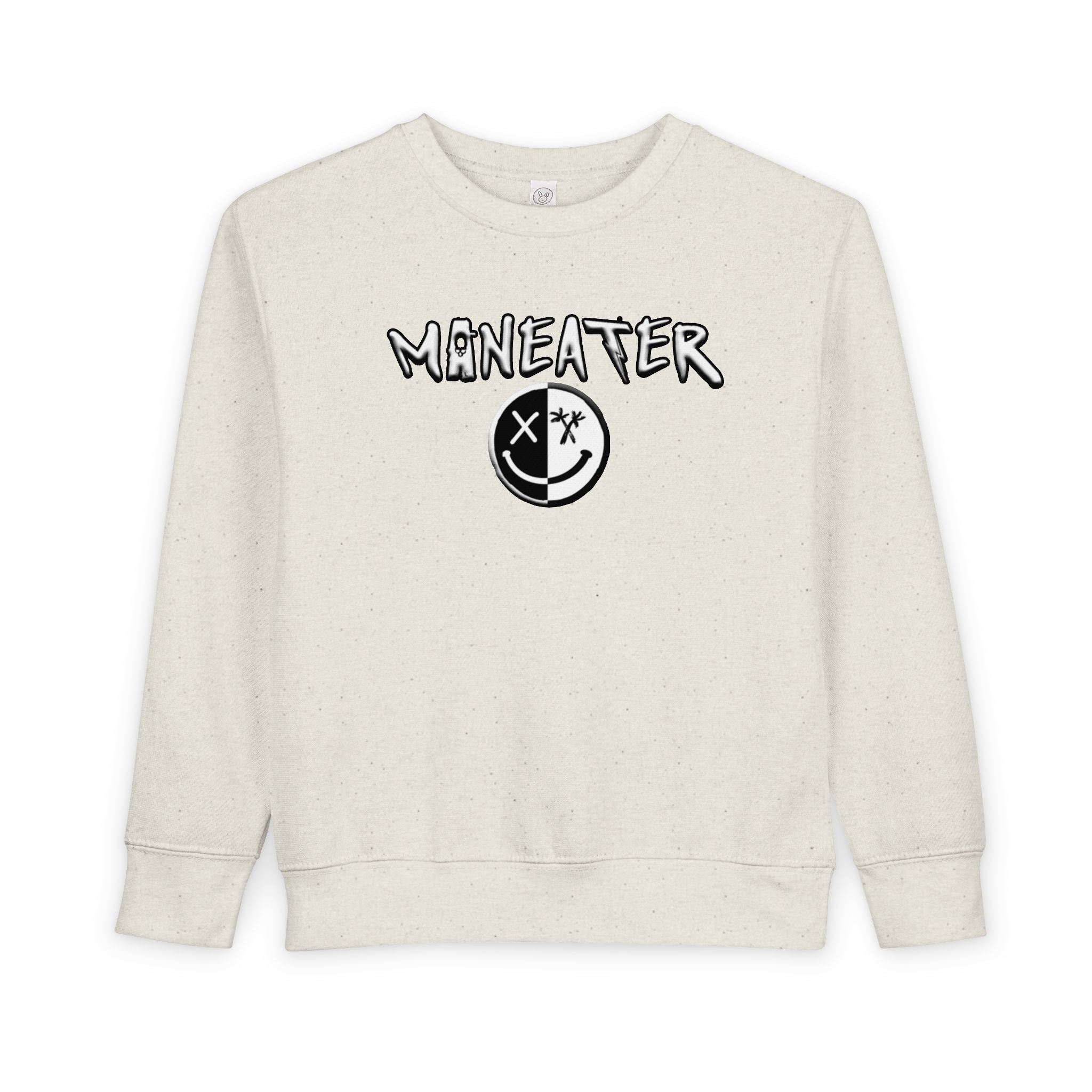 A cozy toddler sweatshirt that brings playful edge to little wardrobes. Soft, medium-weight fleece holds a hand-drawn, slightly grunge smiley logo in muted black and gray, giving it a cool, lived-in look without being harsh. The crewneck falls clean and simple, with ribbed cuffs and waistband that keep tiny sleeves in place during play. Natural heather tones and speckled fabric textures make every piece look gently worn from day one — easy to layer over tees or under a jacket for chilly mornings at the playground or casual family outings. Built for comfort, it moves with squirmy bodies and stays gentle against sensitive skin thanks to a tear-away label and a soft cotton-blend feel.