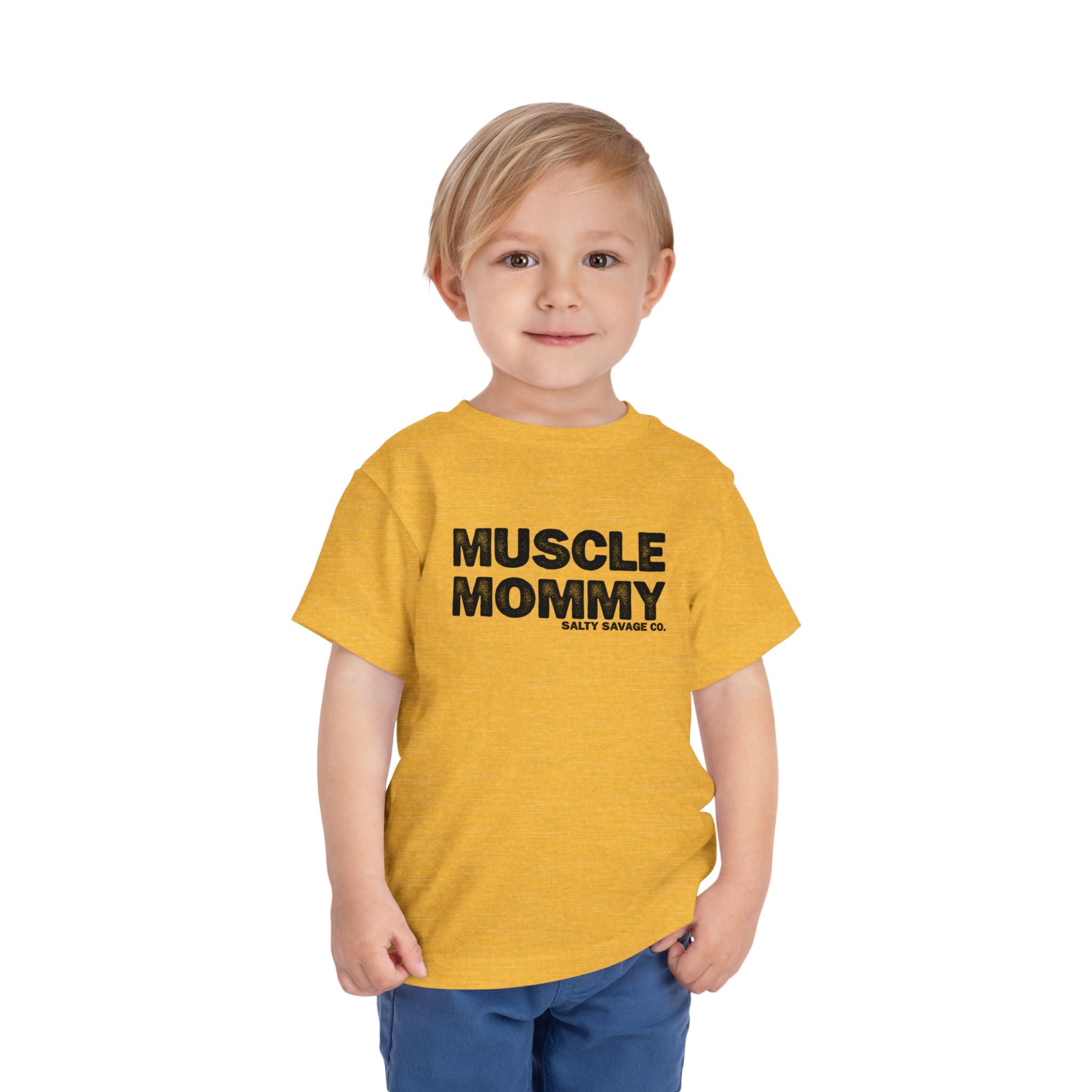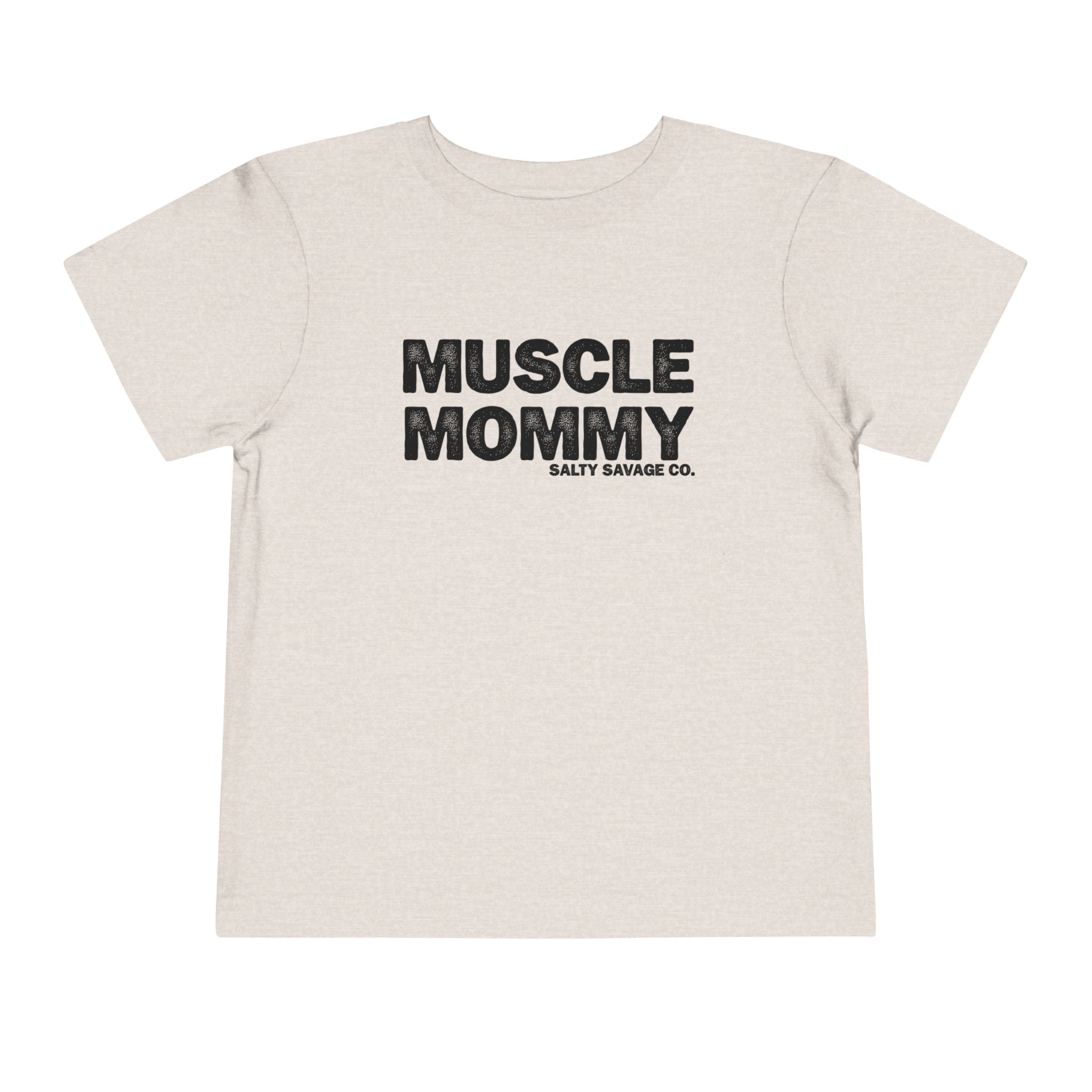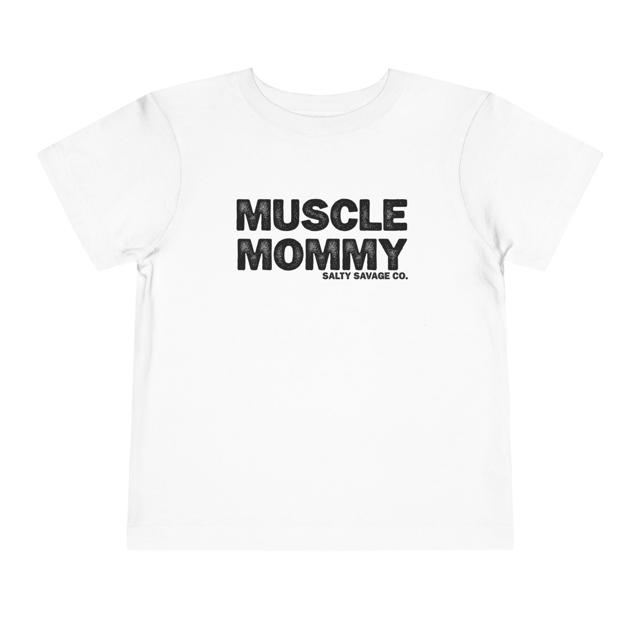 Light, breathable toddler tee with bold, sporty lettering that reads “MUSCLE MOMMY.” Soft, combed cotton feels gentle against little skin while the clean white canvas makes the high-contrast print stand out. This shirt carries playful confidence — it’s for families who love the gym, the playground, and showing off a little personality on everyday adventures. The simple silhouette works under a hoodie or alone on sunny days. Easy to wash and quick to move in, it keeps its shape through playdates, park runs, and family photos that celebrate strength and small moments together.