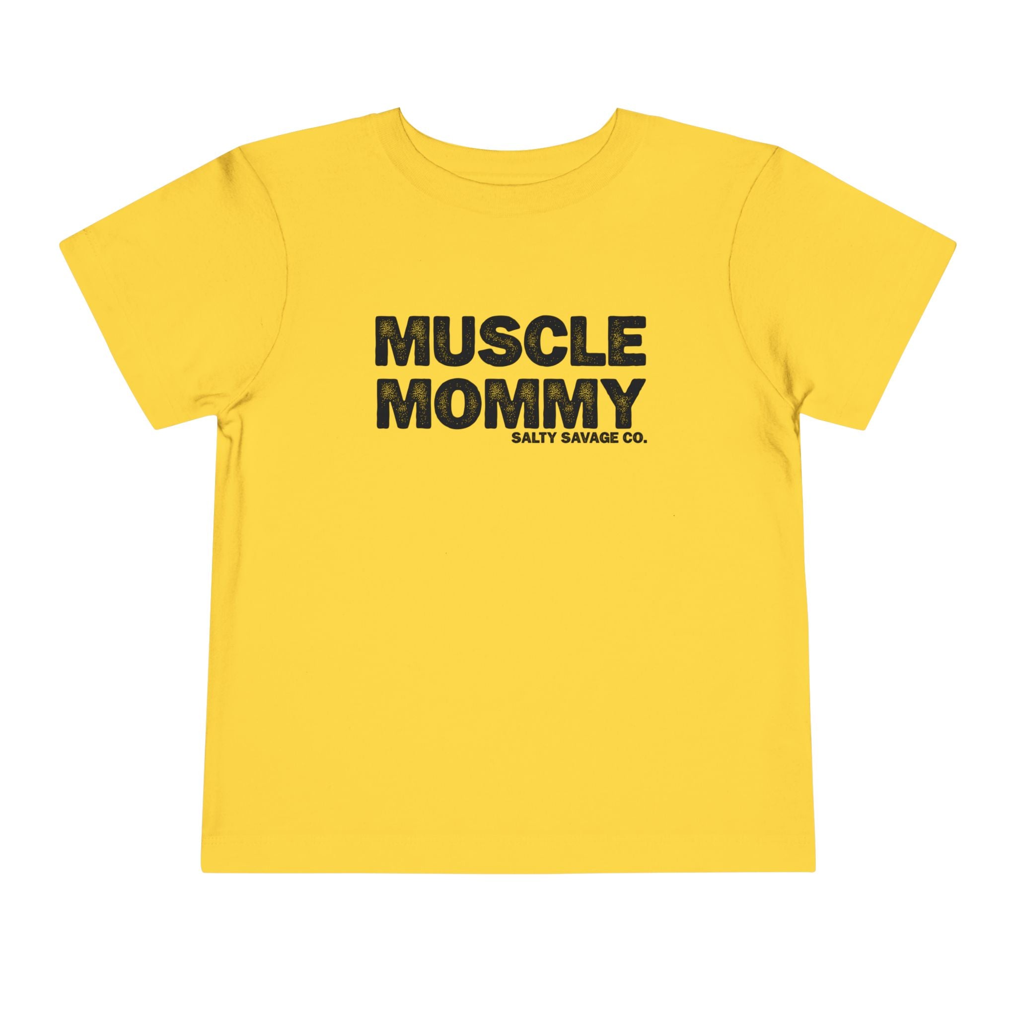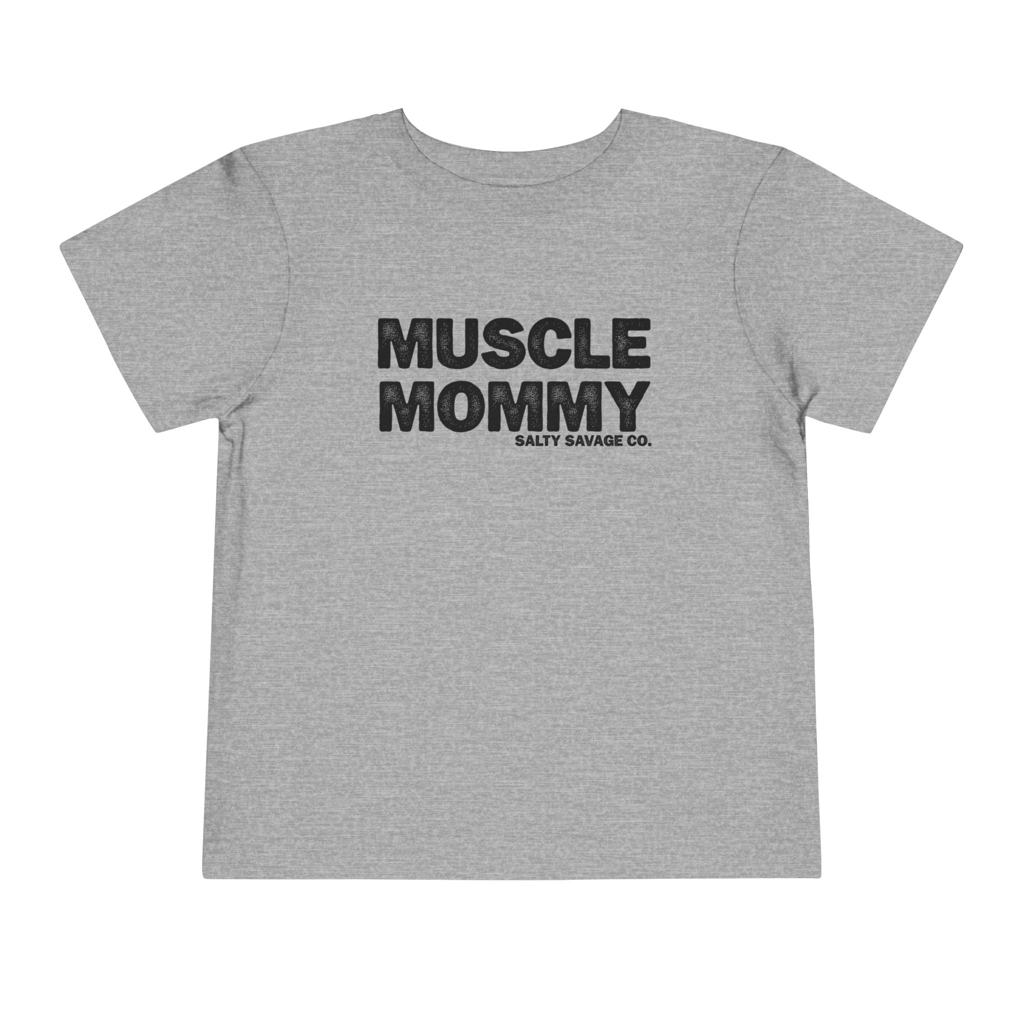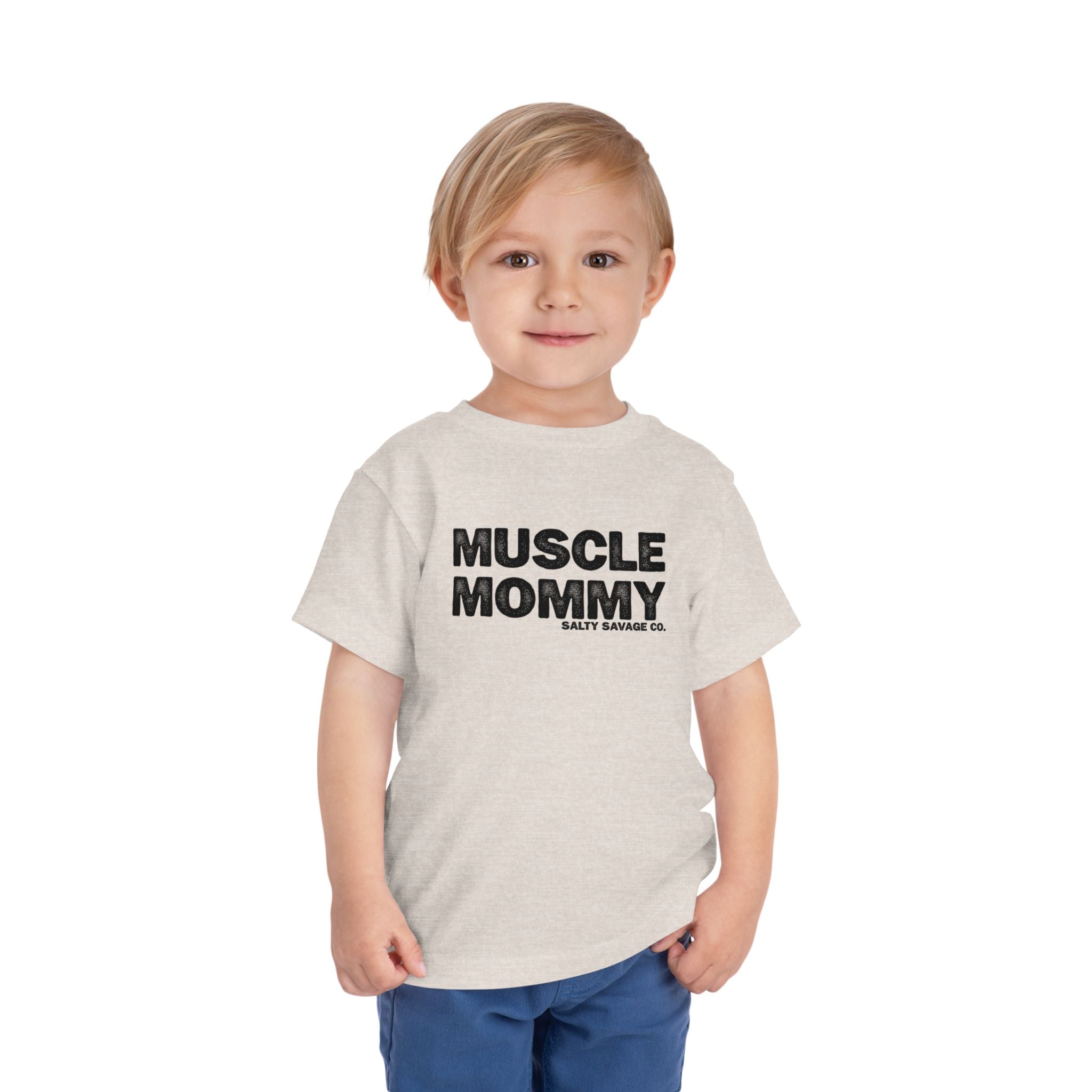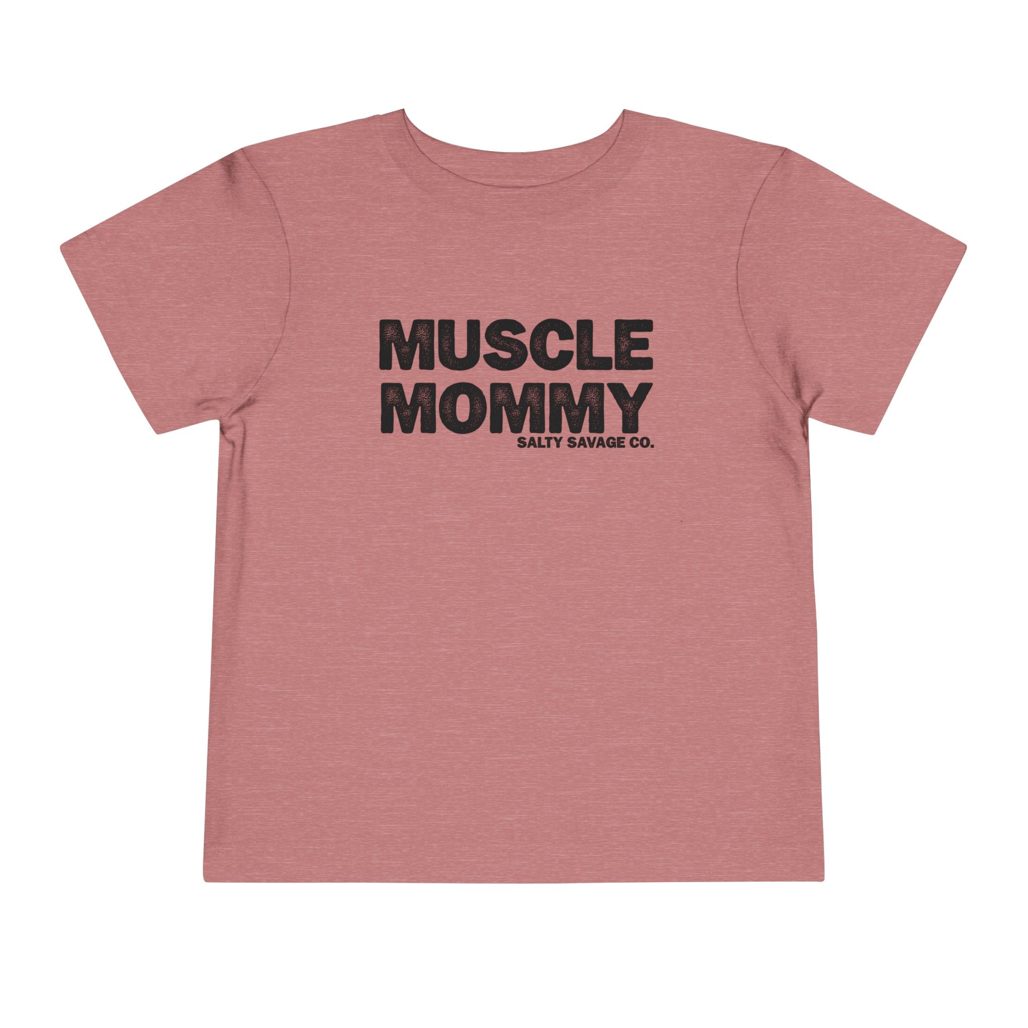 Light, breathable toddler tee with bold, sporty lettering that reads “MUSCLE MOMMY.” Soft, combed cotton feels gentle against little skin while the clean white canvas makes the high-contrast print stand out. This shirt carries playful confidence — it’s for families who love the gym, the playground, and showing off a little personality on everyday adventures. The simple silhouette works under a hoodie or alone on sunny days. Easy to wash and quick to move in, it keeps its shape through playdates, park runs, and family photos that celebrate strength and small moments together.