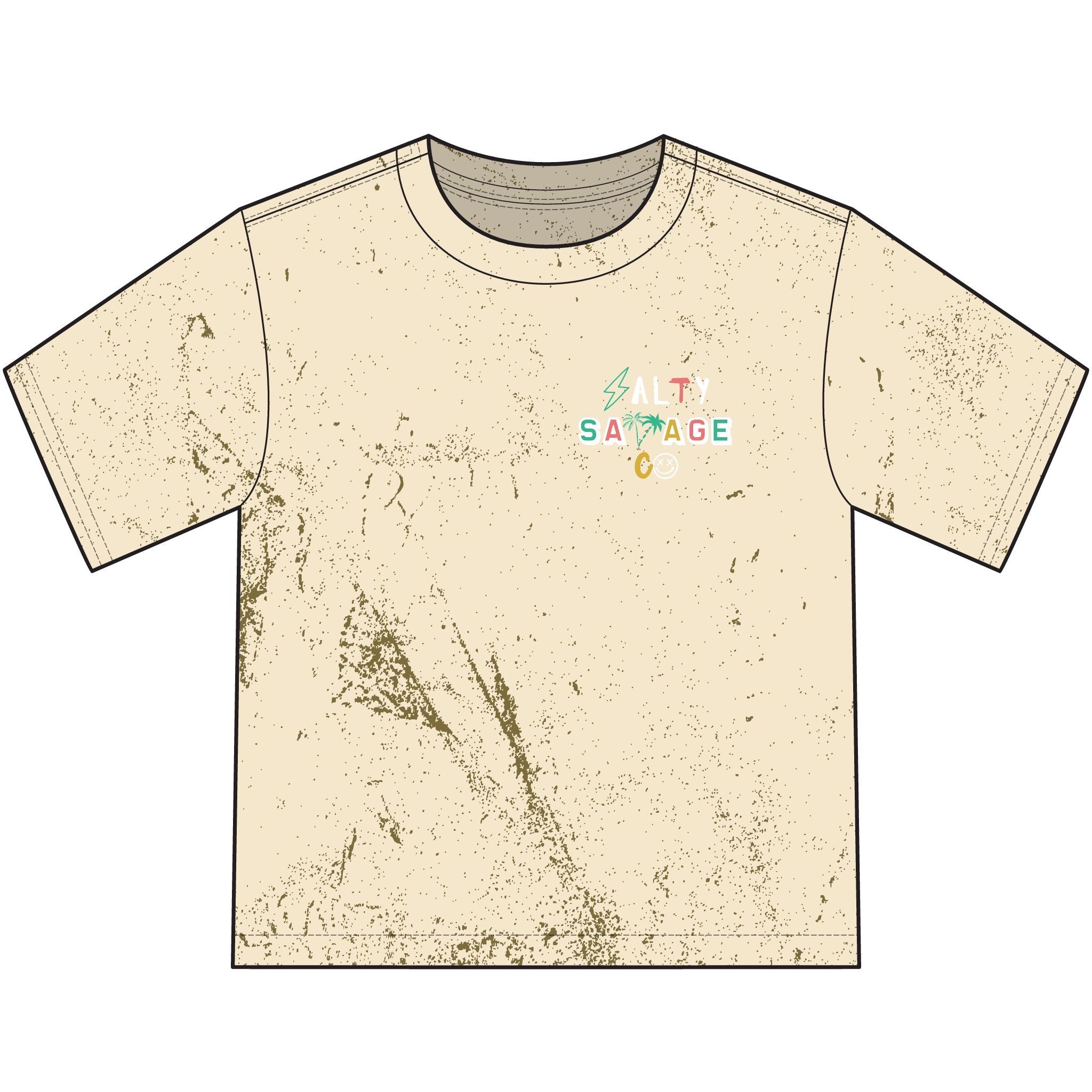 This relaxed heavyweight tee brings a sun-bleached, coastal attitude to everyday wear. The soft, dense ring-spun cotton holds vibrant pigment-dyed color while the distressed, salt-splattered artwork and small chest logo read like a postcard from the shore. It sits boxy and easy across the shoulders, the twill neck tape keeps the neckline stable, and the rib collar keeps the silhouette clean after many washes. Wear it on slow mornings, post-surf hangs, or while wandering boardwalks — it feels lived-in and steady from the first pull-over.