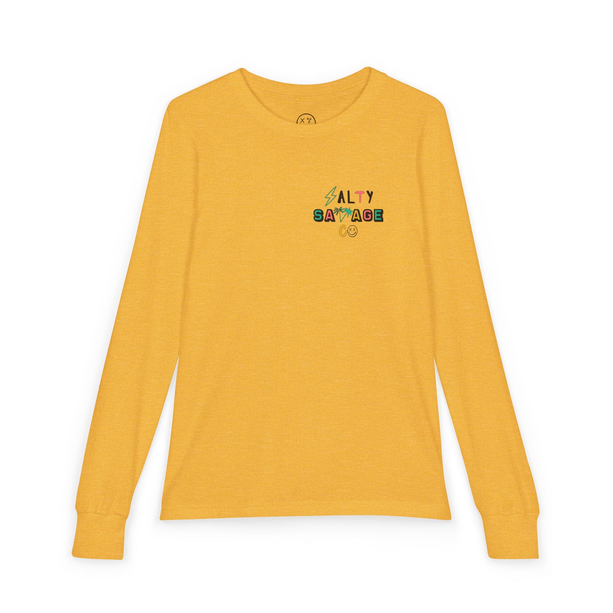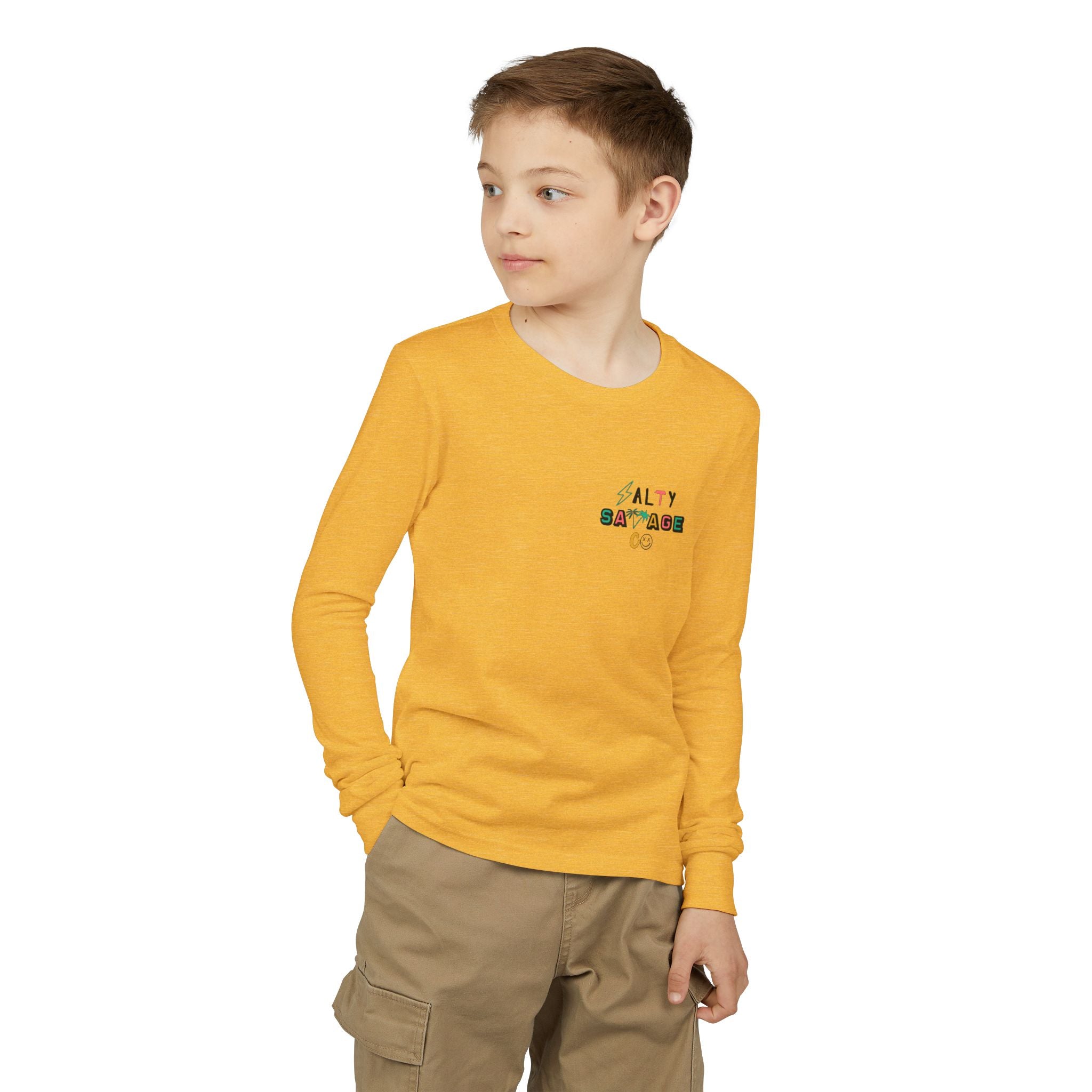 Lightweight, soft, and quietly playful — this long sleeve tee brings small‑scale beach energy to everyday wear. The slim retail cut and ribbed cuffs keep sleeves in place while kids run, climb, and lounge, and the tear‑away label gives scratch‑free comfort. A minimalist front graphic adds color without shouting, so this shirt layers easily under jackets or stands on its own for cooler mornings and salty evenings. Made from Airlume combed and ring‑spun cotton, it washes well and keeps its shape, so it stays part of the rotation from playground to boardwalk.
